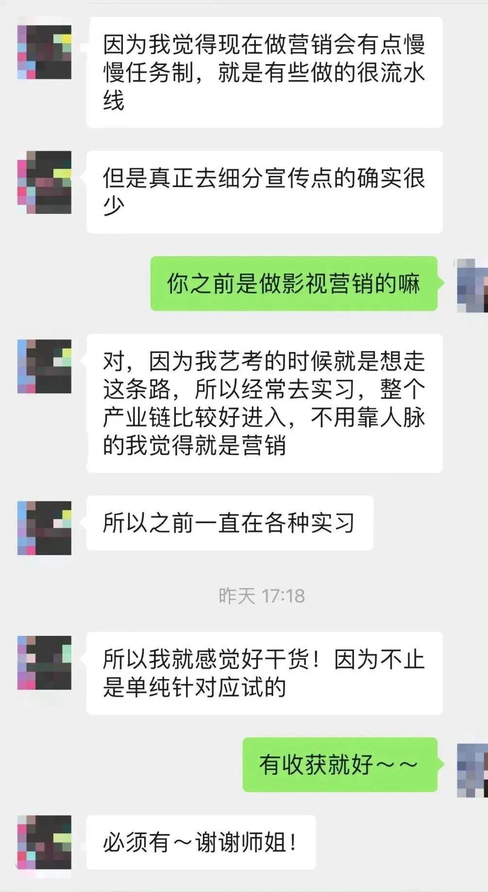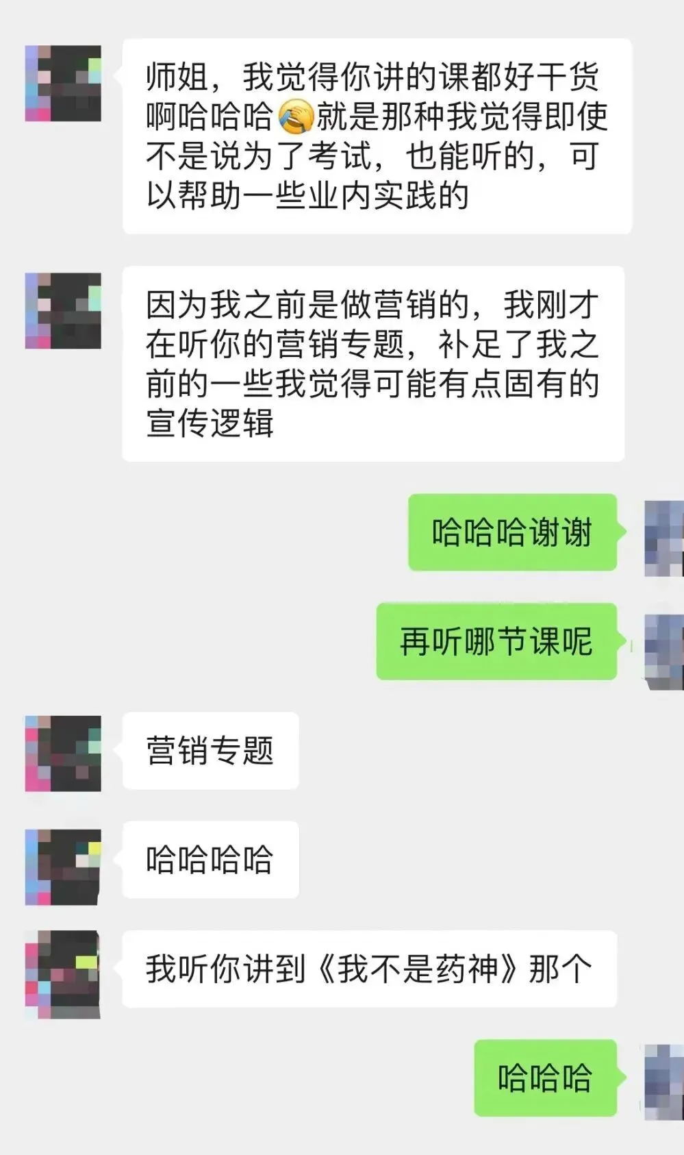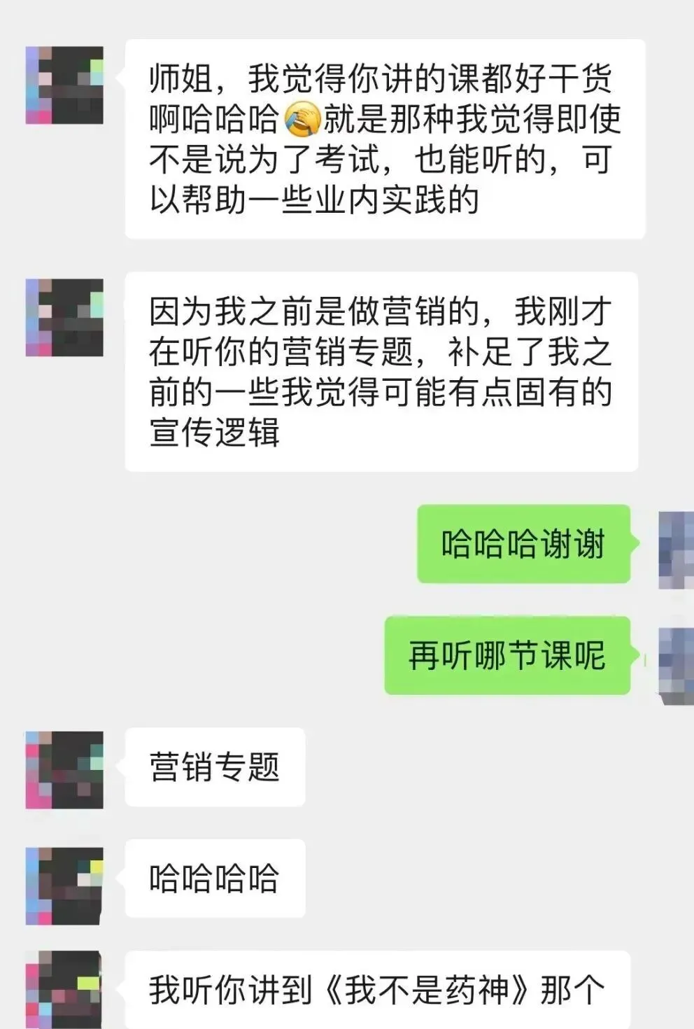 授课师姐有多年的影视工作经验,因此能结合实践在课程中增加真实的制片生产模板、剧本评估体系、电影营销方法。