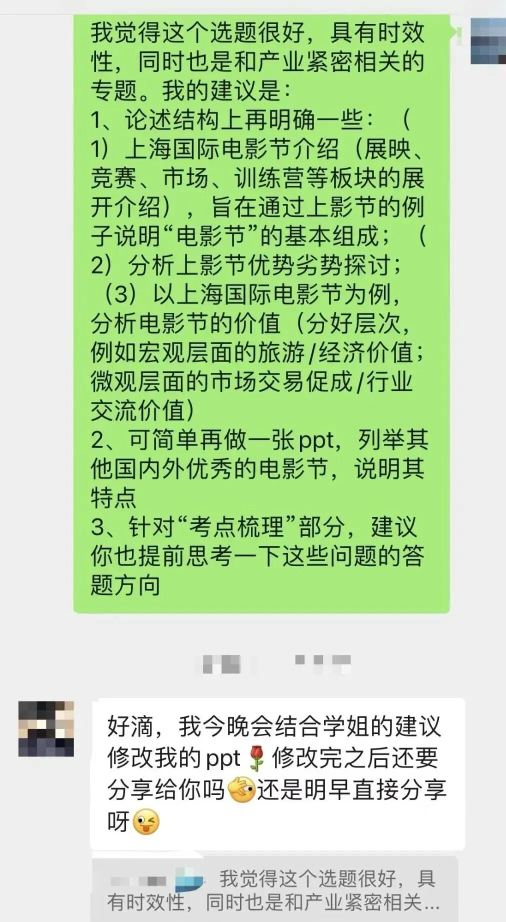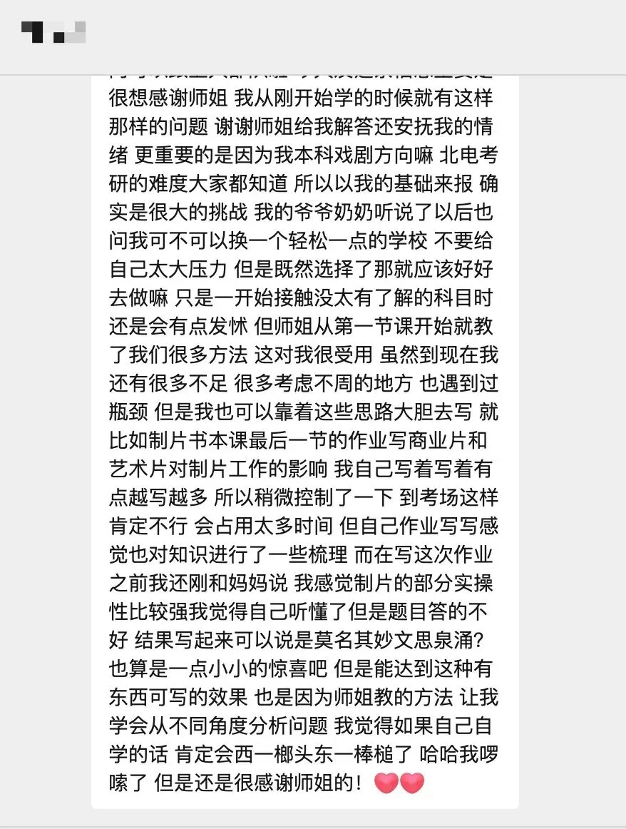 授课师姐曾在电影学院管理系担任课程助教,给电影学院本科生授课。对导师熟悉,了解学习重点。