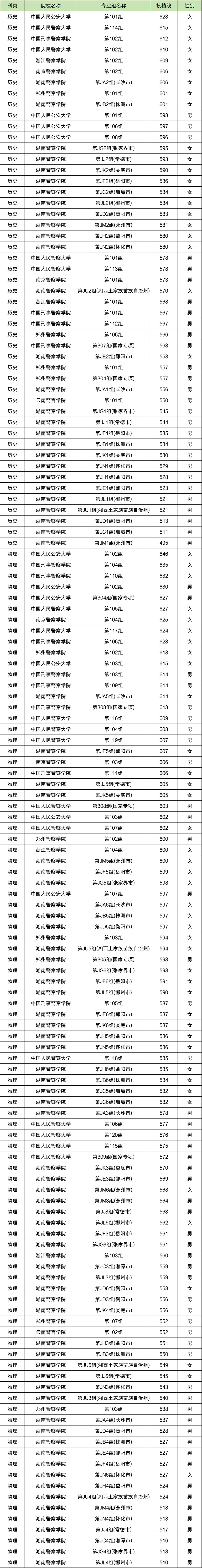 其余院校专业组分数线为:中国刑事警察学院第102组612分(女生)、郑州警察学院第101组557分(男生)、湖南警察学院第JA1组(长沙市)556分(男生)等。