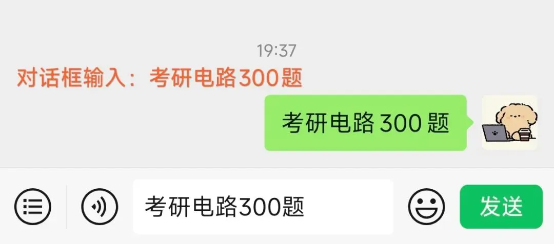 第四步,进入对话框回复关键字“考研电路300题”: