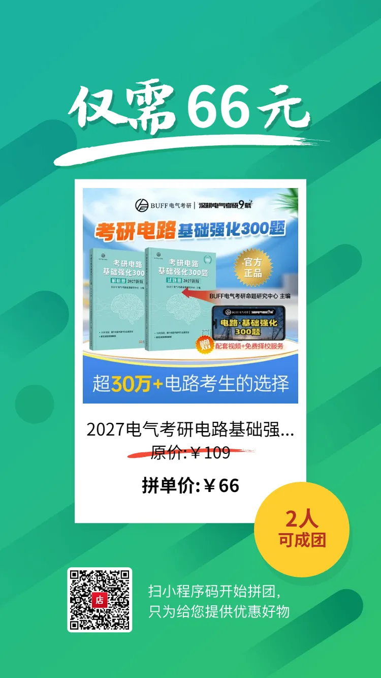 经过5年沉淀,10万+考研学子的考验,BUFF电气考研电路教研的不懈提升,《考研电路基础强化300题》2027新版正式亮相,由东南大学出版社出版!