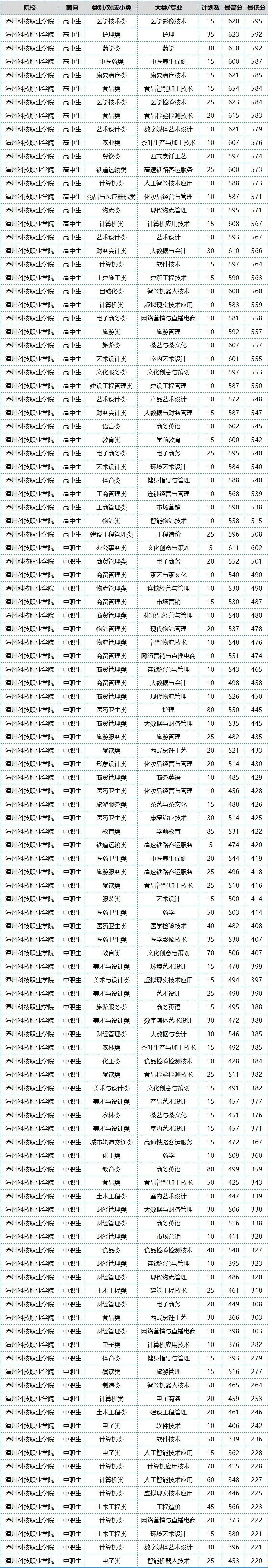 2025高职分类(春招)漳州科技职业学院录取分数线