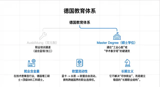 上期我们提到了德国的双元制,也就是Ausbildung 体系:学校+企业,边学边做,快速进入劳动力市场。这条路在德国本土非常成功,但本质上是一条职业培训通道,更适合技工、护理、服务业等岗位,对国际学生来说,学历通用性弱、上升空间有限、跨国流动能力几乎为零。