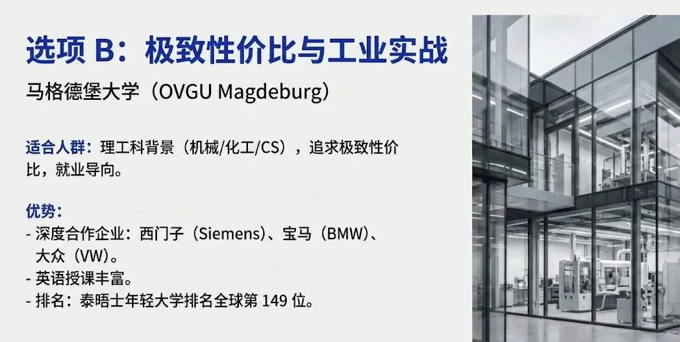 适合人群:理工科背景(机械/化工/CS),追求极致性价比,就业导向。