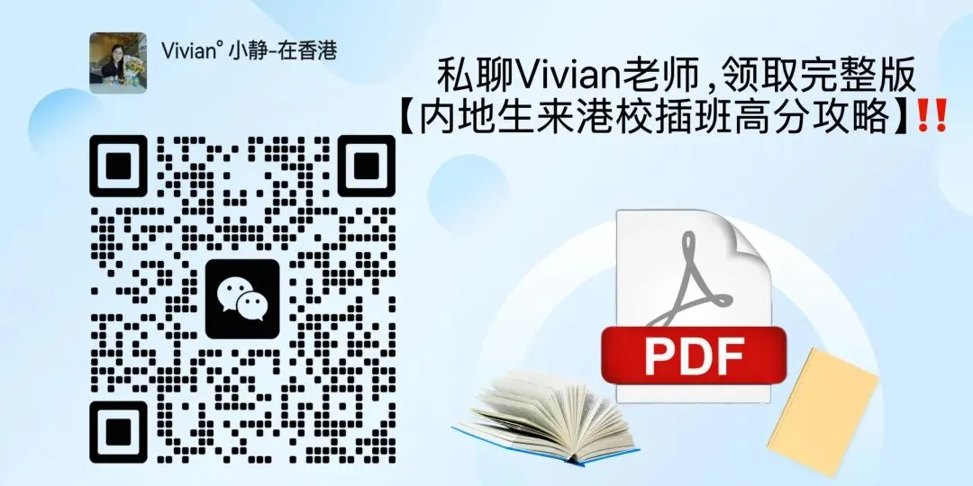欢迎扫描二维码添加小静老师领取香港升学资料包,内含内地生来港插校插班高分攻略!
