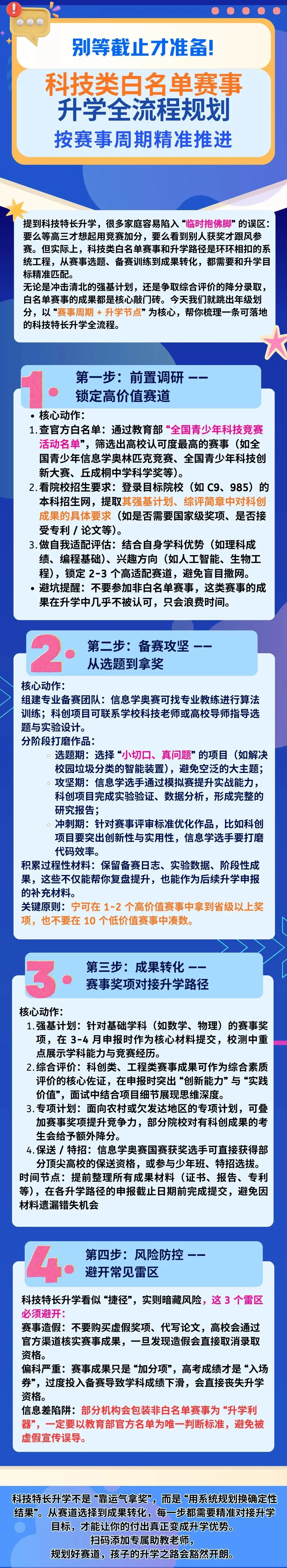 >别等截止才准备!科技类白名单赛事升学全流程规划按赛事周期 + 节点精准推进