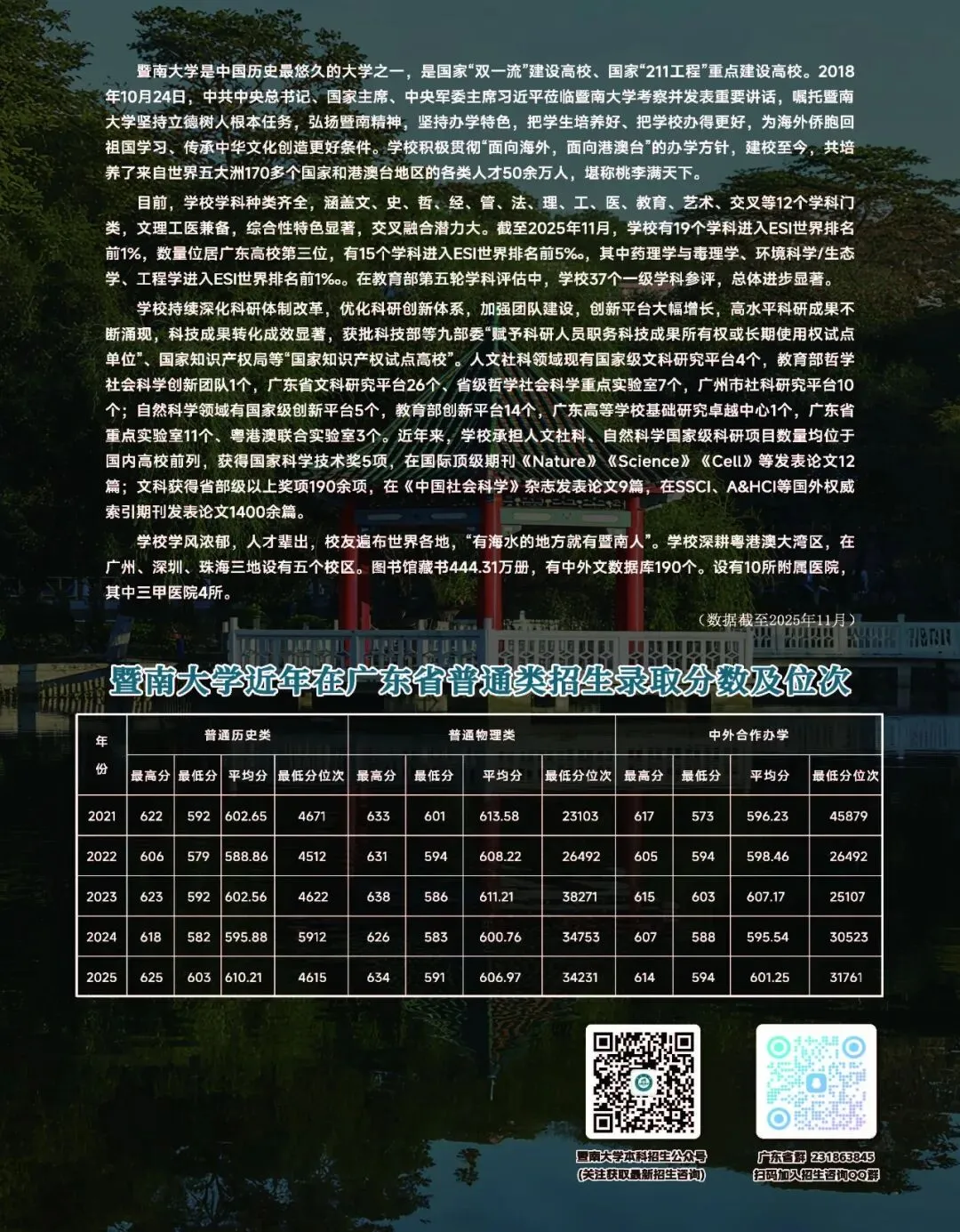 华侨第一学府,中央直属,暨南大学,2025年本科招生各专业录取分数,附2026招生指南,快来和识途生涯王老师一起看看吧~~~~~