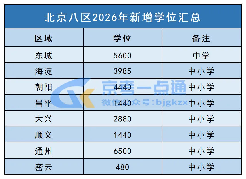 京考一点通收集到了部分区发布的中小学新增学位数量↓