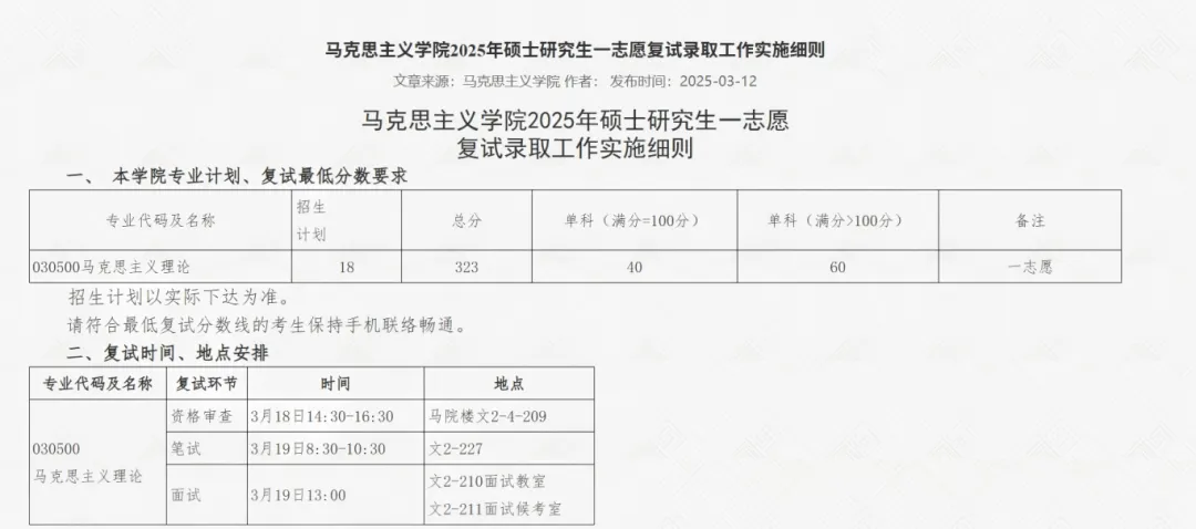 北京工商大学马克思主义学院2025考研公布复试方案中,复试最低分数线是国家线,但实际进入复试的名单是根据18人的招生计划来划定的,最后一名的分数为357分,符合该学院的成绩要求,最终被录取。