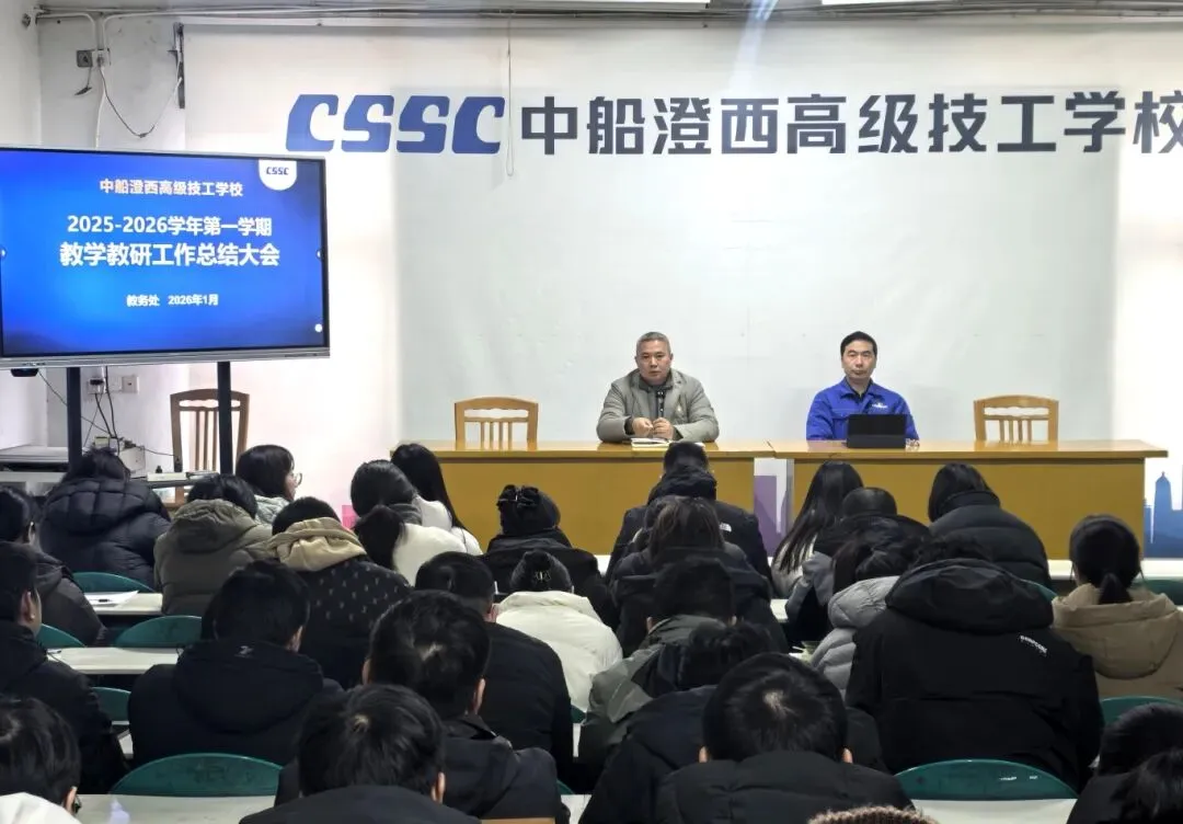 为深入推进教学教研工作改革,切实推动工学一体化人才培养模式的创新发展,全方位提升技能人才的培养质量,1月27日下午,中船集团旗下中船澄西船舶修造有限公司所属中船澄西高级技工学校教务处召开2025-2026学年第一学期教学教研工作总结大会。学校副校长茅健、教务处领导及全体教师参加此次会议。