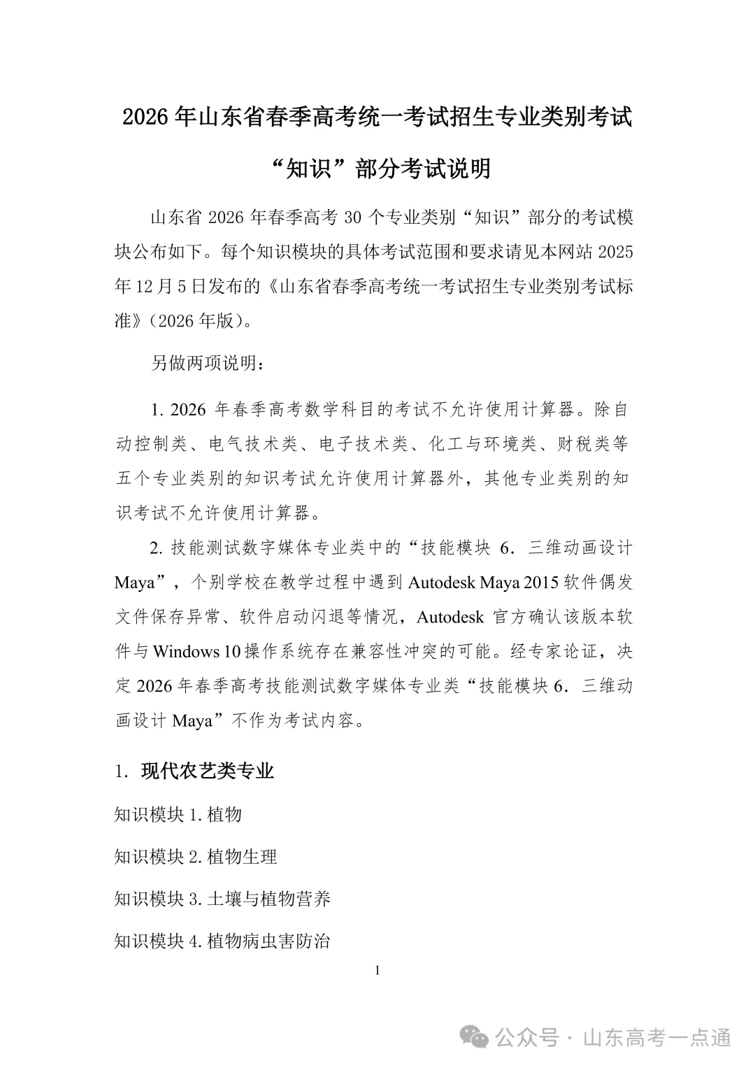 升学规划|2026年山东省春季高考统一考试“知识”部分考试说明发布!