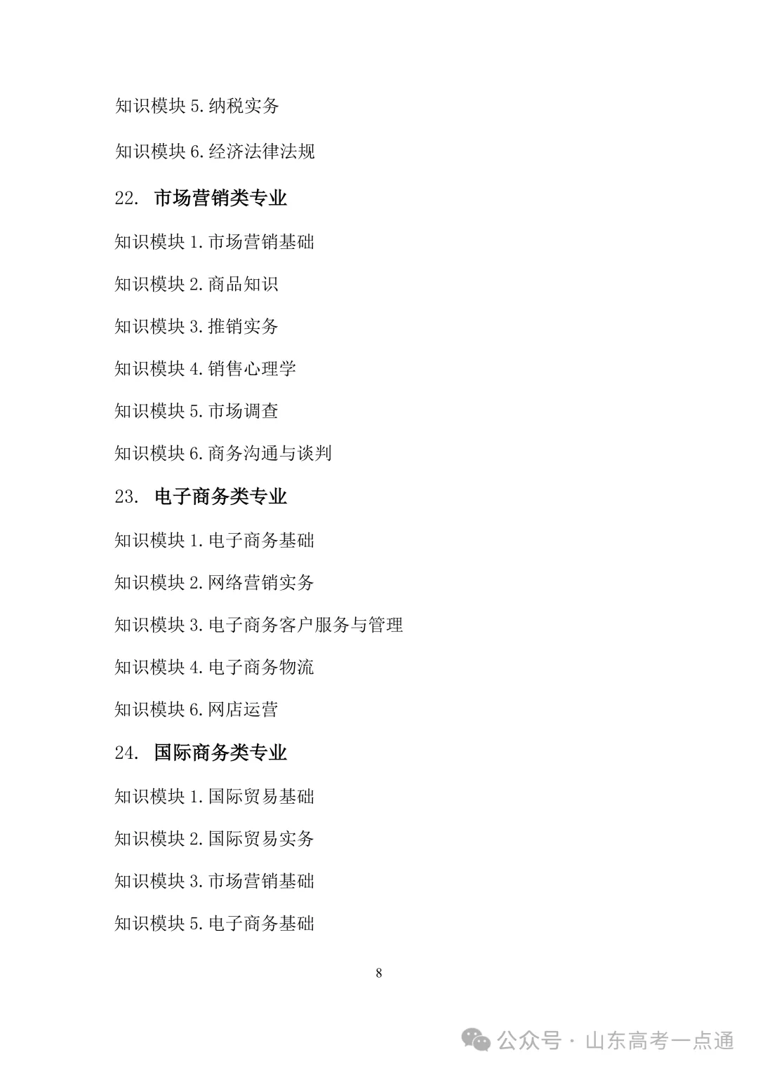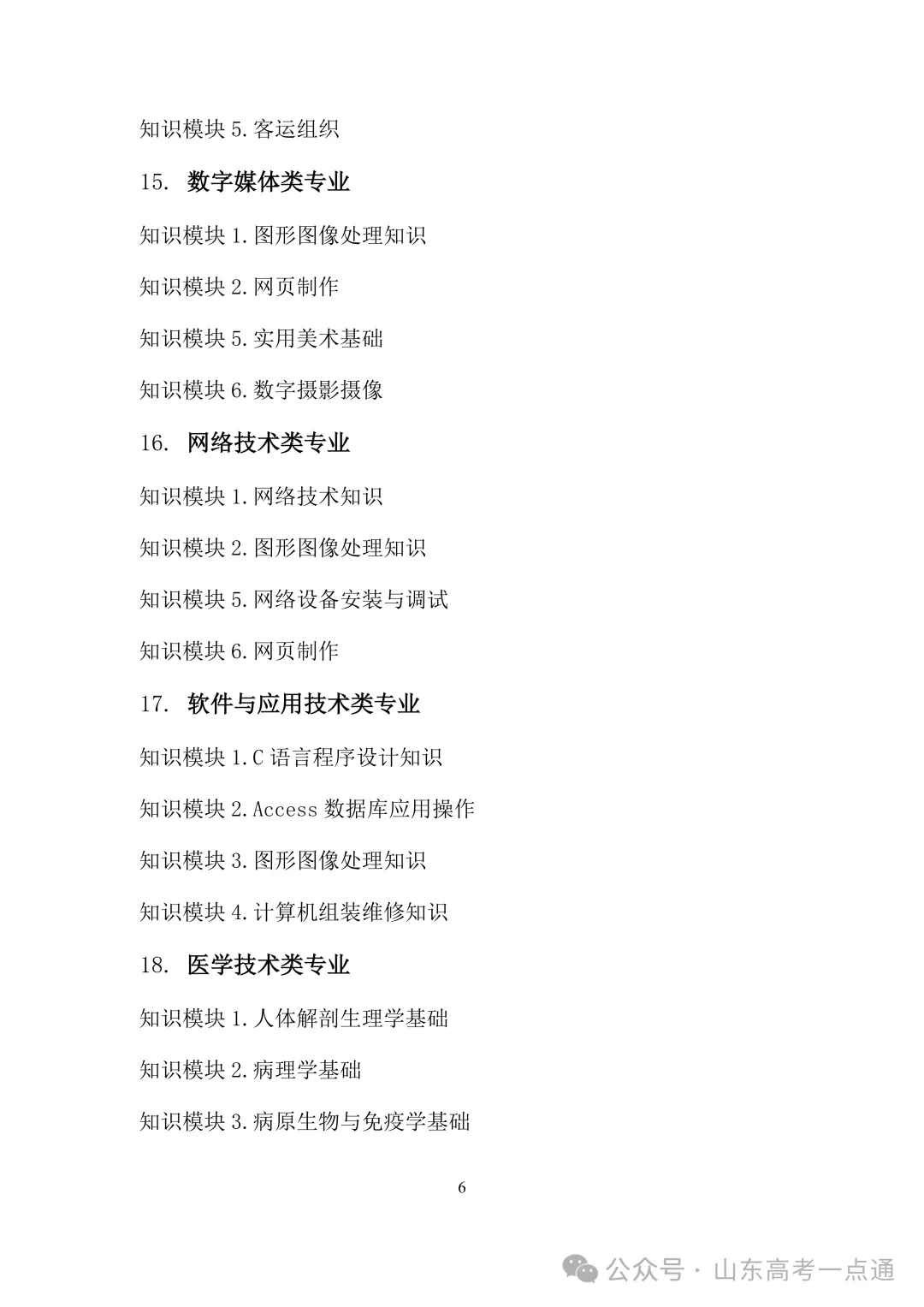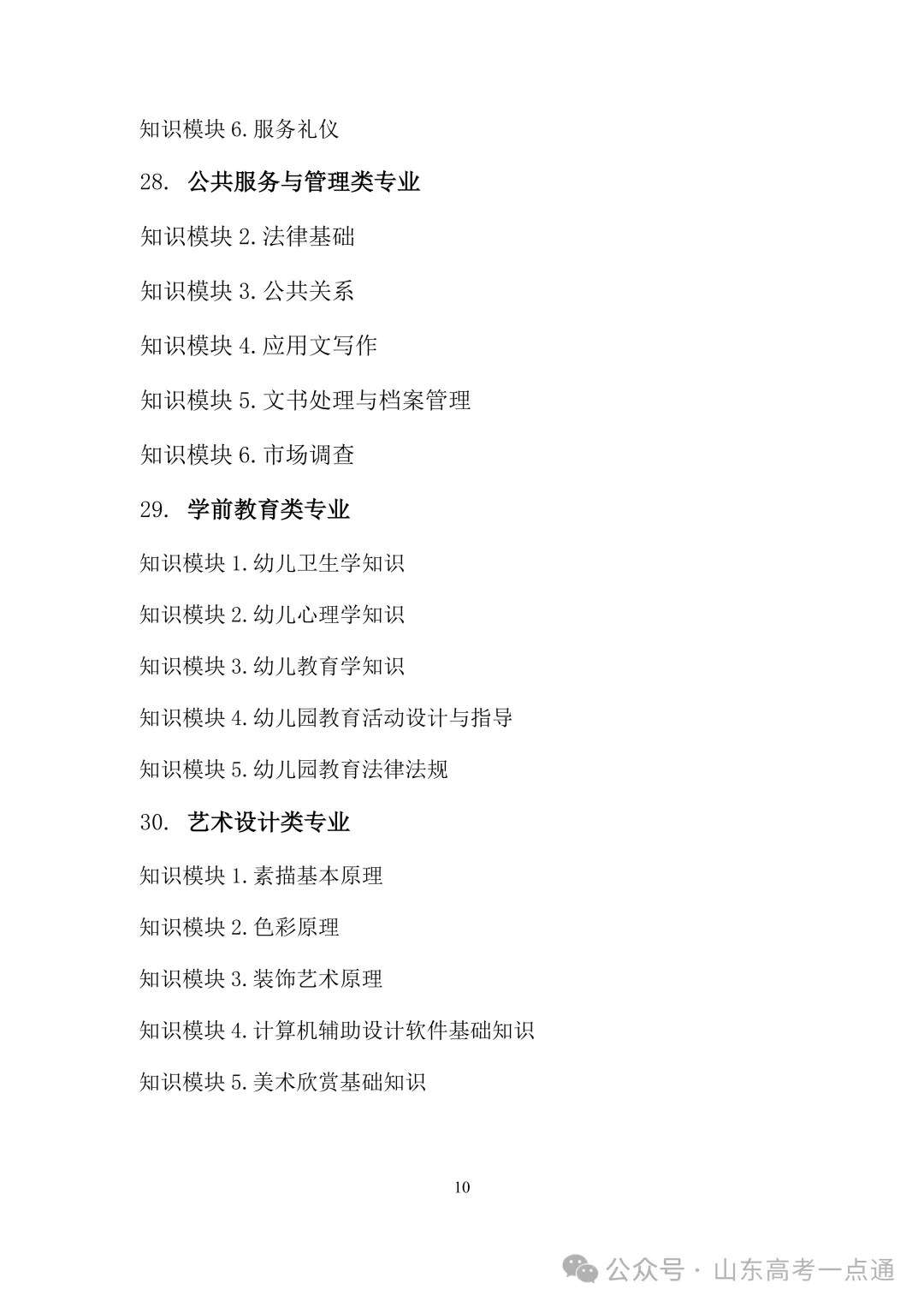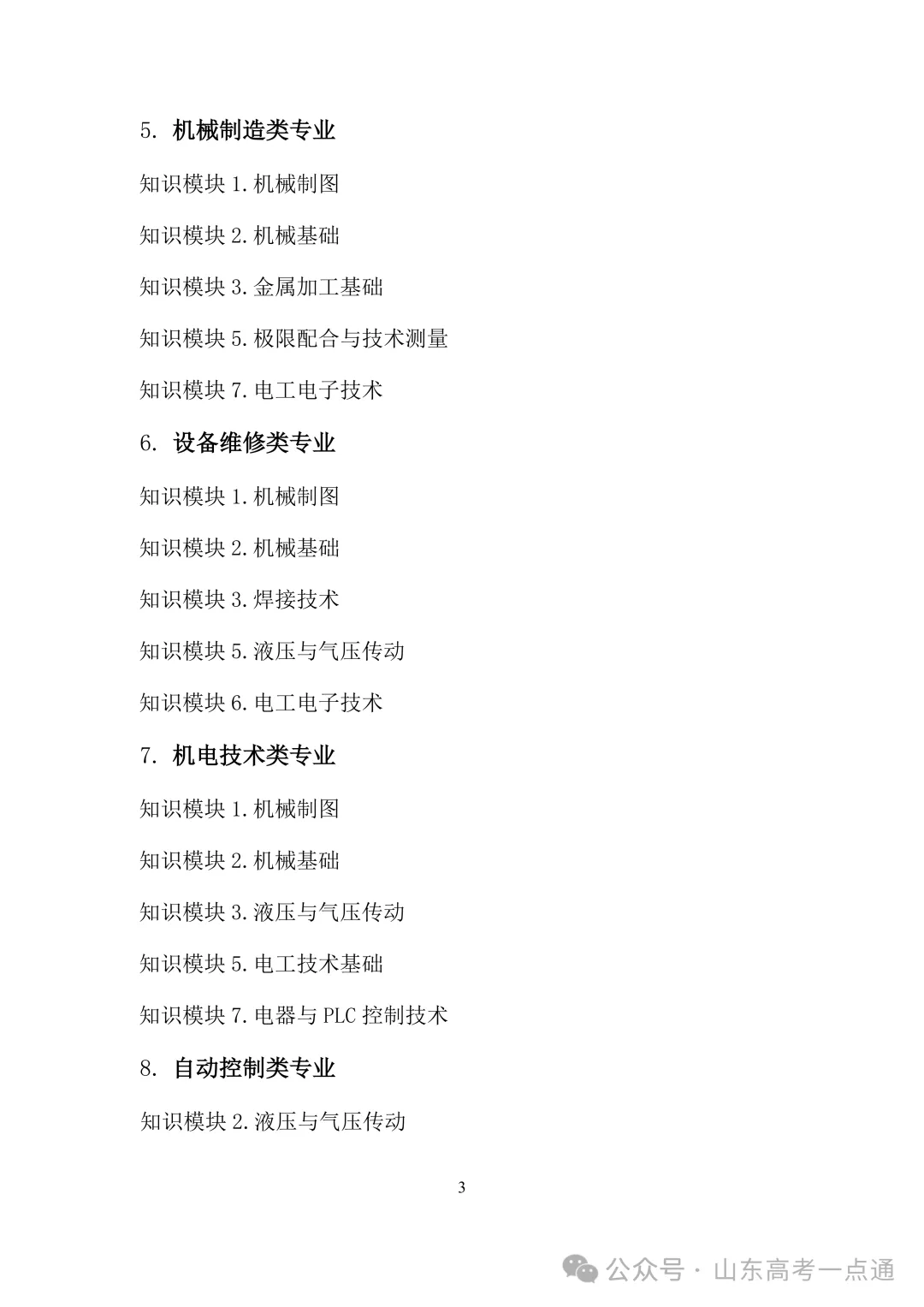 我省春季高考统一考试招生实行“文化素质+专业技能”考试模式。“文化素质”考试包括语文、数学、英语3个科目,总分320分;“专业技能”考试包括专业知识和技能测试两部分,总分430分,其中专业知识满分为200分,技能测试满分为230分。其中,春季高考技能测试一般安排每年3月份左右进行,春季高考文化考试与专业知识考试一般安排在每年5月份左右进行,具体时间将另行通知。刚刚,山东省教育招生考试院发布了《2026年山东省春季高考统一考试招生专业类别考试“知识”部分考试说明》,一起来看~2026年山东省春季高考统一考试招生专业类别考试“知识”部分考试说明