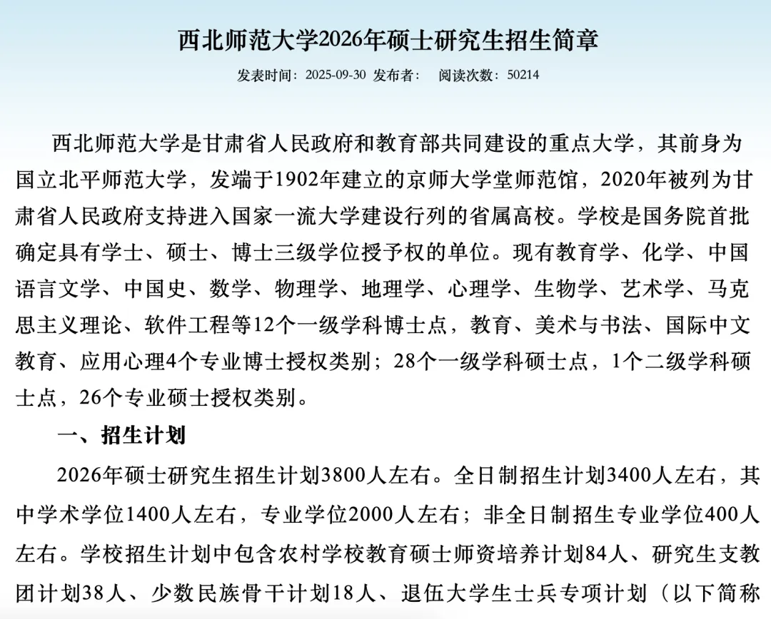 西北师范大学(Northwest Normal University,简称西北师大),是甘肃省人民政府和教育部共同建设的重点大学,是国家教师发展协同创新实验基地、教育部师德师风建设基地、国家语言文字推广基地。学校位于兰州市,现任党委书记贾宁、校长王占仁,校训为“知术欲圆、行旨须直”。