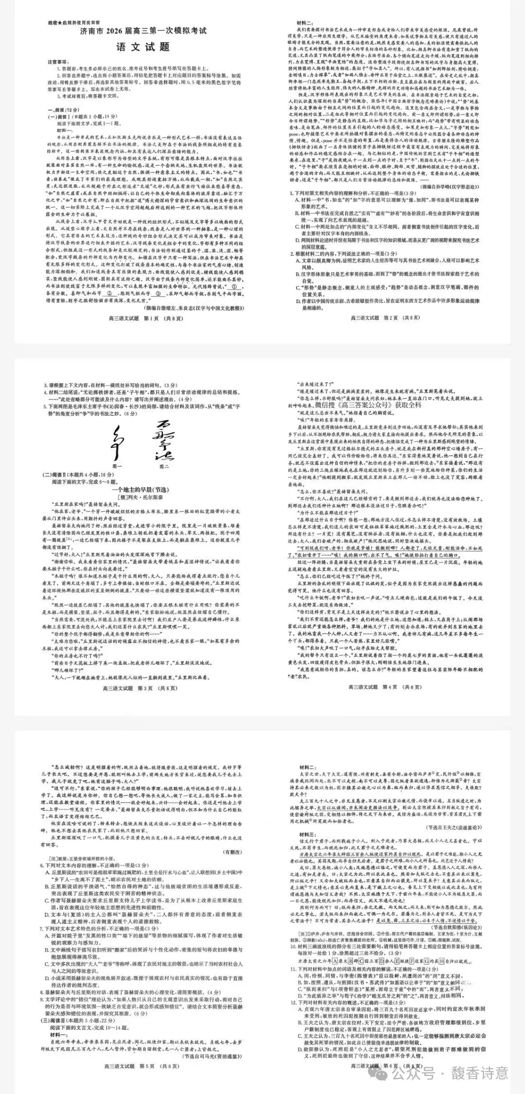 >济南市2026届高三1月第一次模拟考试及参考答案