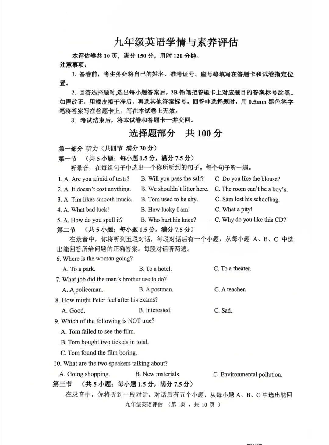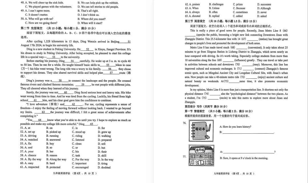 >2025-2026 九上济南章丘区期末考试英语试题+答案