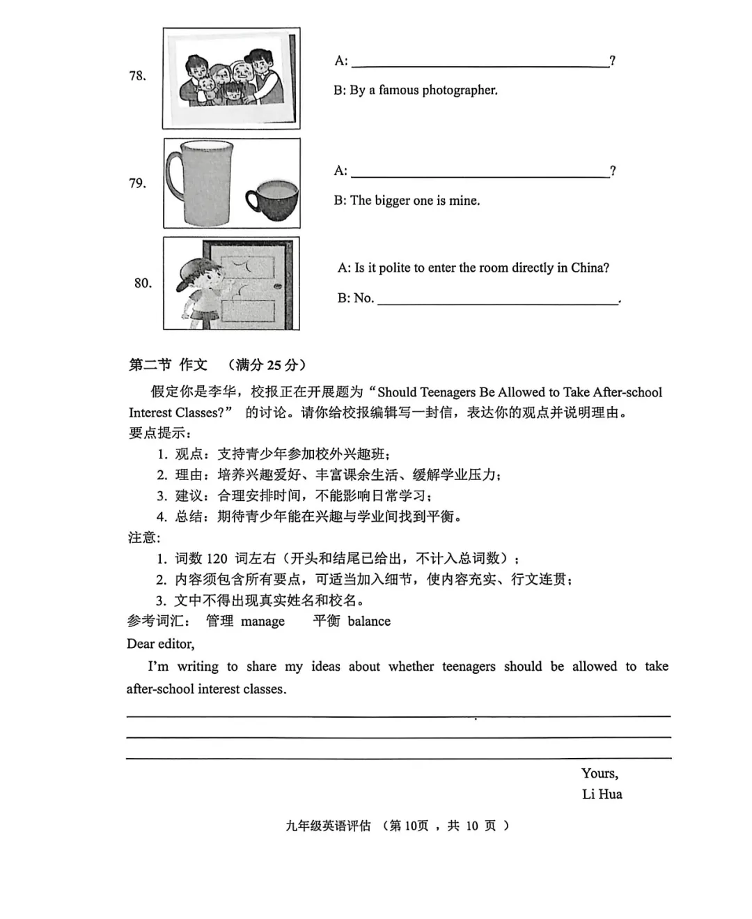 2025-2026 九上济南章丘区期末考试英语试题+答案