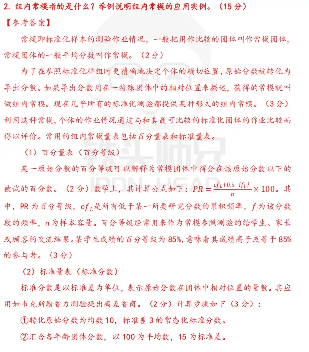 【铁头考点】《心理测量》第九章第四节 组内常模和量表
