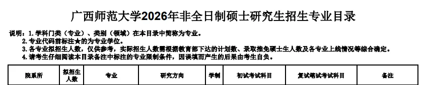 (二)初试科目:详见《广西师范大学2026年硕士研究生招生专业目录》