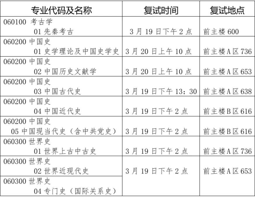 2.由于世界史专业:专门史(国际关系史)方向上线人数不足,所有获得世界史专业世界近现代史方向复试资格的考生可在一志愿面试结束后,于2025年3月19日下午17:00时前,向学院递交二次意向方向申请书,提交方式为:现场发放申请书,考生亲笔签字交回。每位考生只能申请1个二次意向方向。学院审核通过后,按照第一志愿录取完成后相关方向剩余计划,根据二次意向考生总成绩单独排序录取,其中二次意向考生总成绩=初试总分+一志愿复试总分。