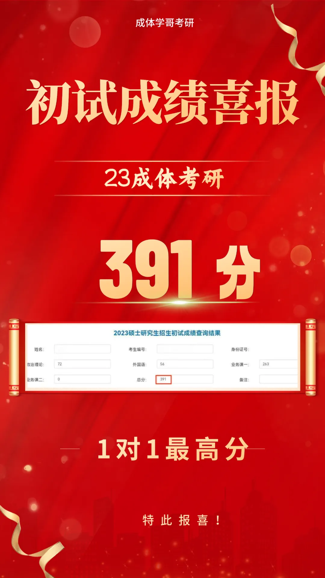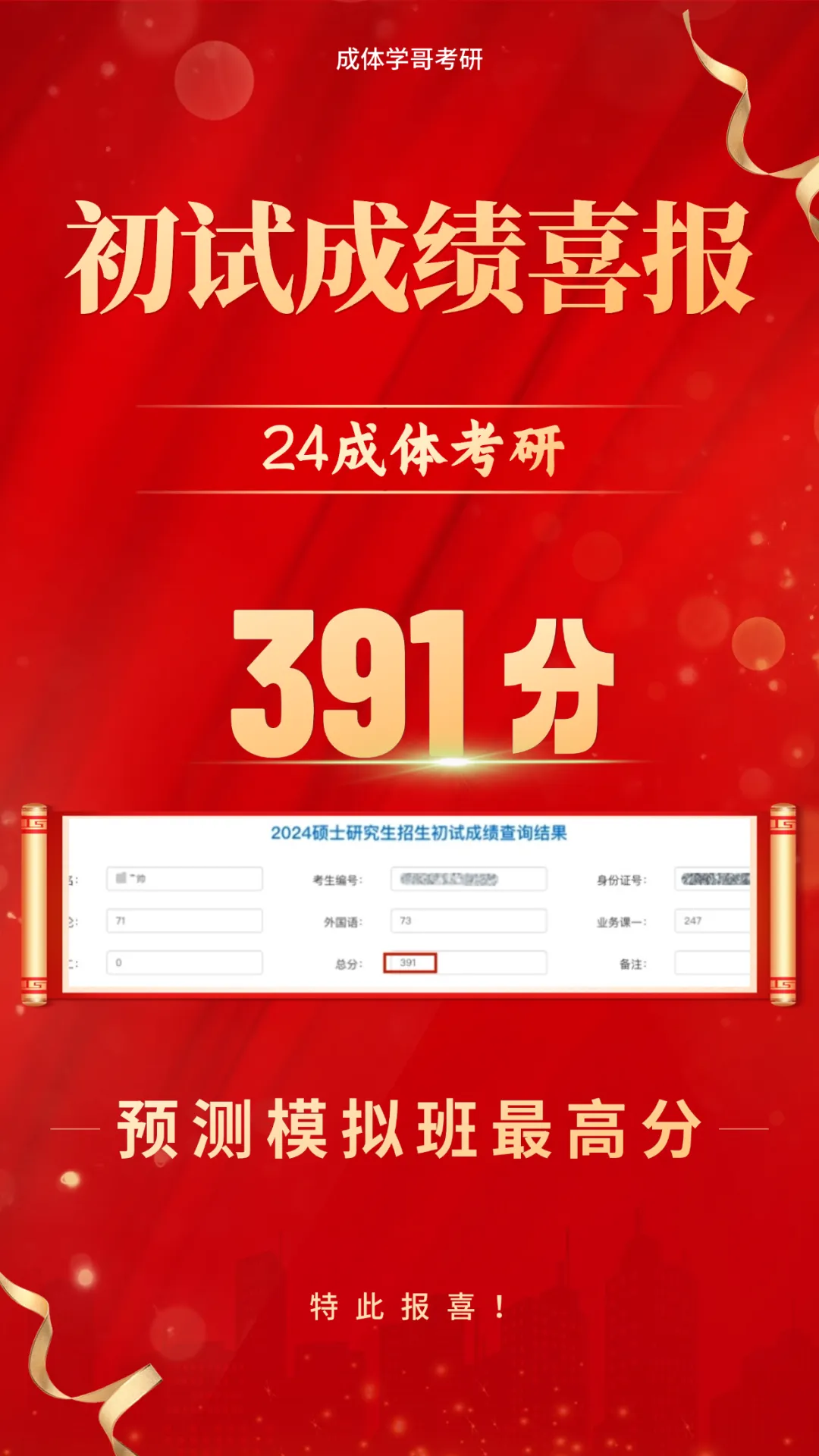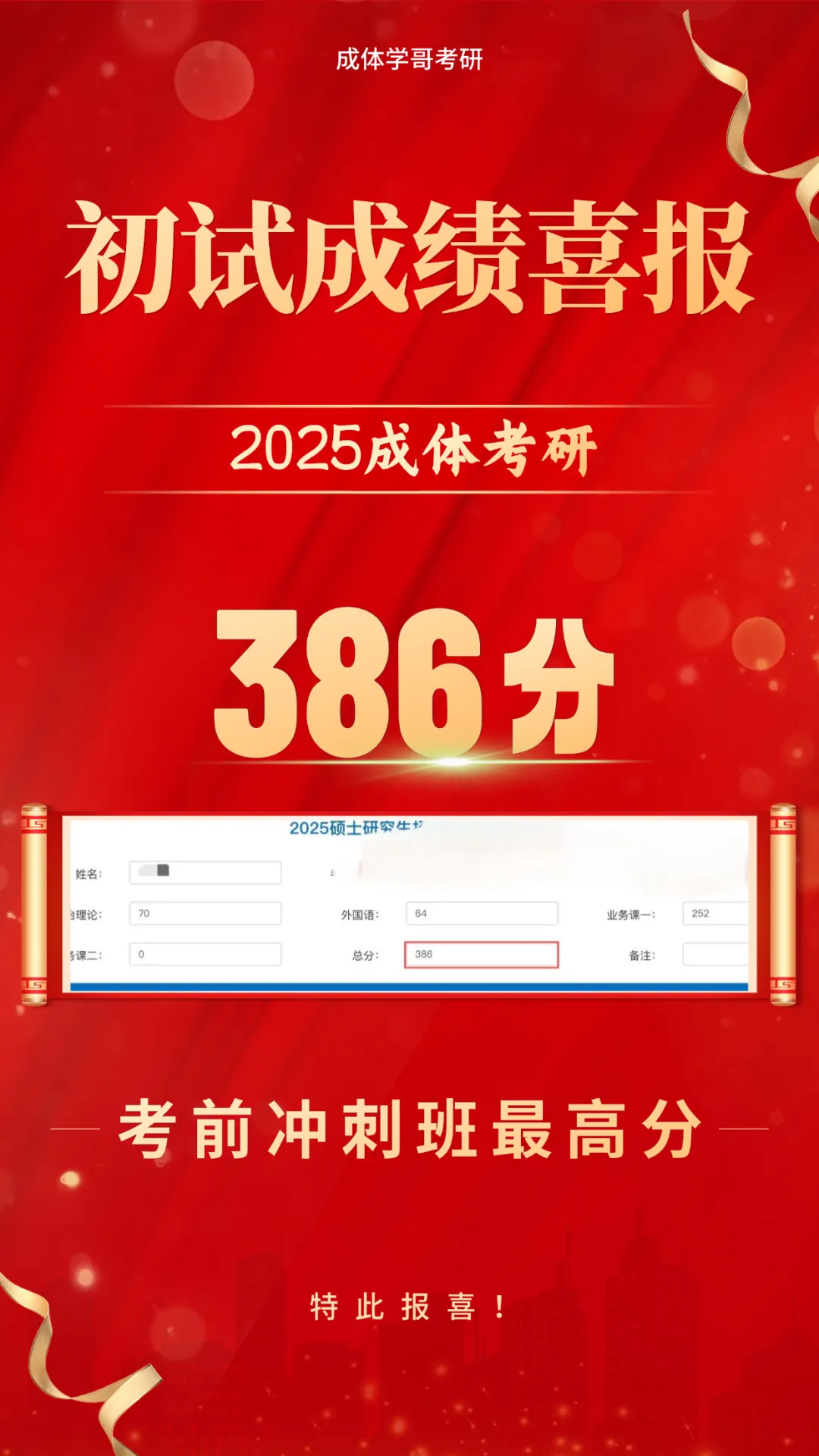 2、根据成体学哥团队的内部统计,全程班学员整体录取比例约为60%,譬如2025年最高分397分,2024年最高分407分,2023年最高分407分,2022年最高分408分,2021年最高分398分,最低分283分都为成体学哥团队全程班学员,同样的课程分数差距之大,同时近几年成都体育学院考研试题更为灵活多变,因此考研上岸是有多种影响因素的,我们并不能做到百分之百的上岸率;