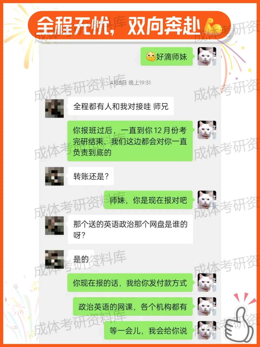 1、首先,这里要强调的是,在之前的第2、4条中已经明确提到,我们成体学哥团队是专注于提供专业课辅导服务。如果你是全程班的学员,我们将免费赠送政治和英语网课,帮助您进行系统性的学习。如果学弟学妹已经通过网络了解过相关情况,就会知道考研界有很多优秀的政治和英语老师可供选择。大部分考研的学生会根据自己的喜好选择合适的老师来辅助复习。因此,我们通常会让学员自行选择他们喜欢的老师进行跟课学习。