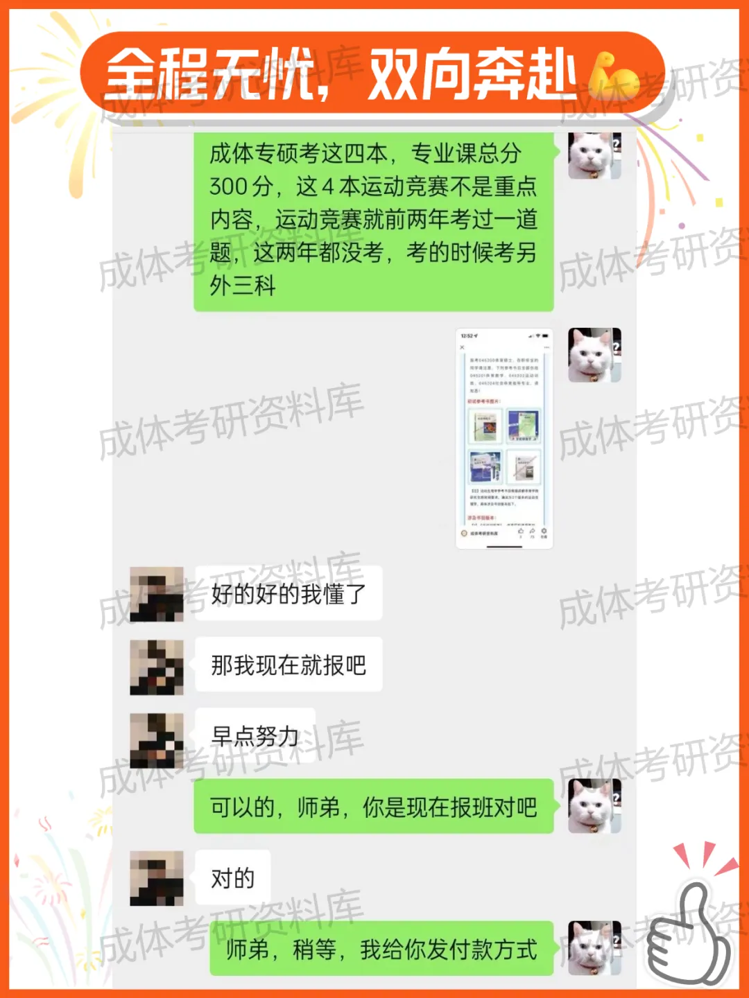 我们能给出的承诺是,我们会倾尽专业与专注,为每一个信任我们的学员提供助力,助他们顺利通过考研。与针对全国广泛范围内所有院校的“大锅饭”服务模式不同,我们选择在特定院校进行深度耕耘,至今已积累了9年的丰富经验。这不仅源于我们对这份事业的热爱,更在于我们不断总结经验,使服务更为系统和专业。特别是从校园生活的点滴到学校的考研政策,从课程内容到毕业流程,无论是备考信息还是读研历程,我们都了如指掌。每一届成体考研学子的复习进度、基础状况、学习方法以及备考过程中遇到的问题,都成为我们宝贵的经验财富。这也是大家一直推荐并认可成体学哥的重要原因。以下是我们今年的亮点、升级: