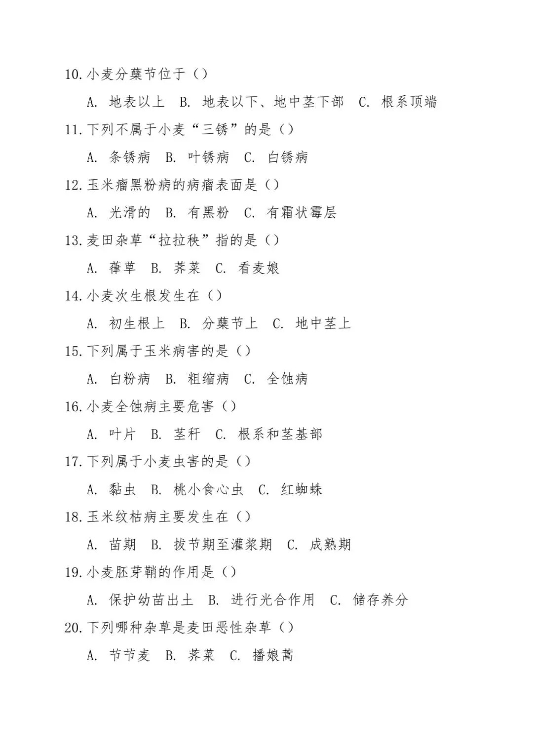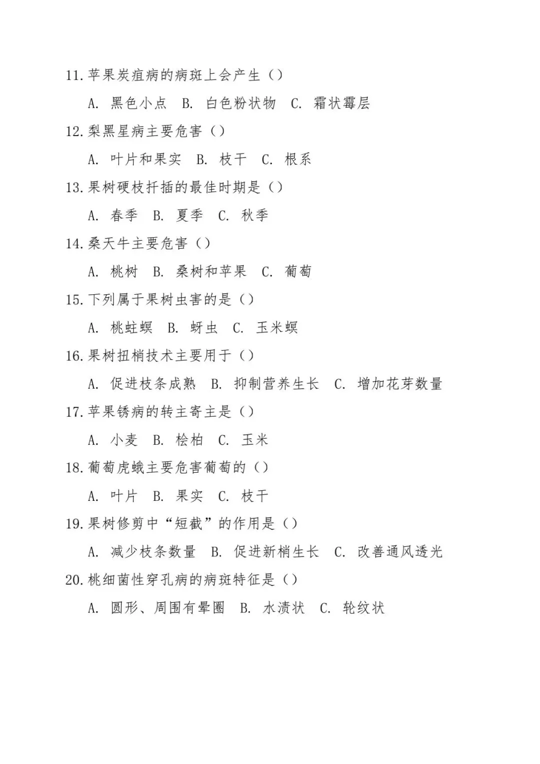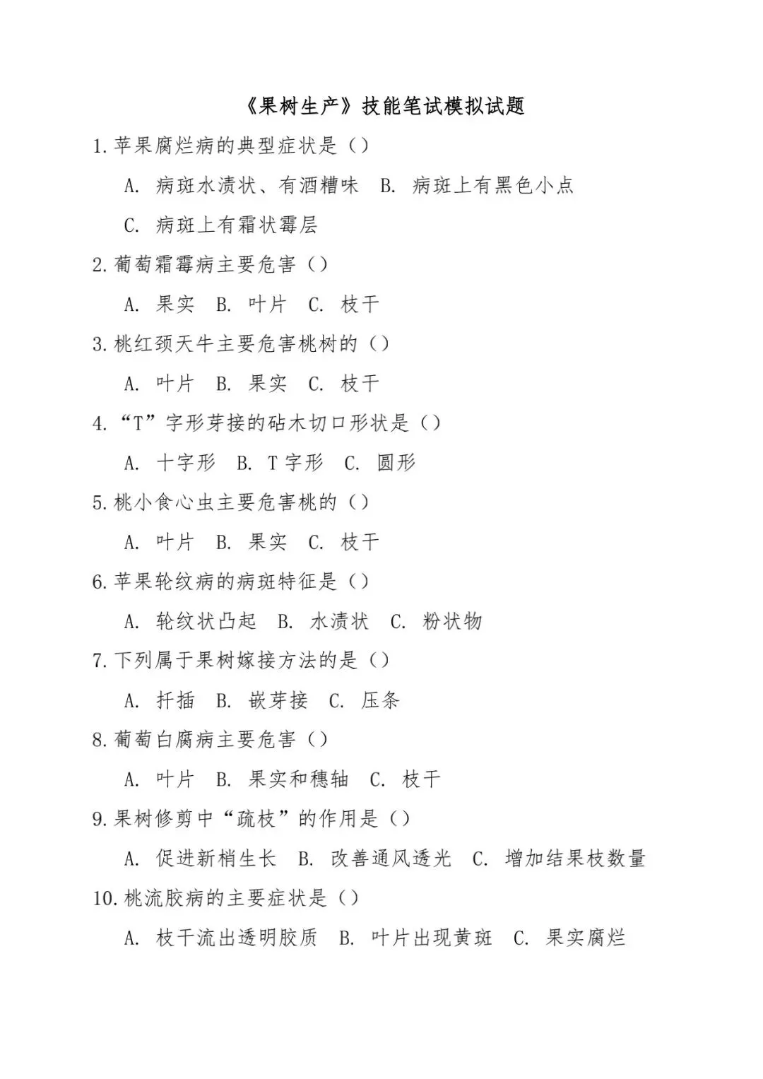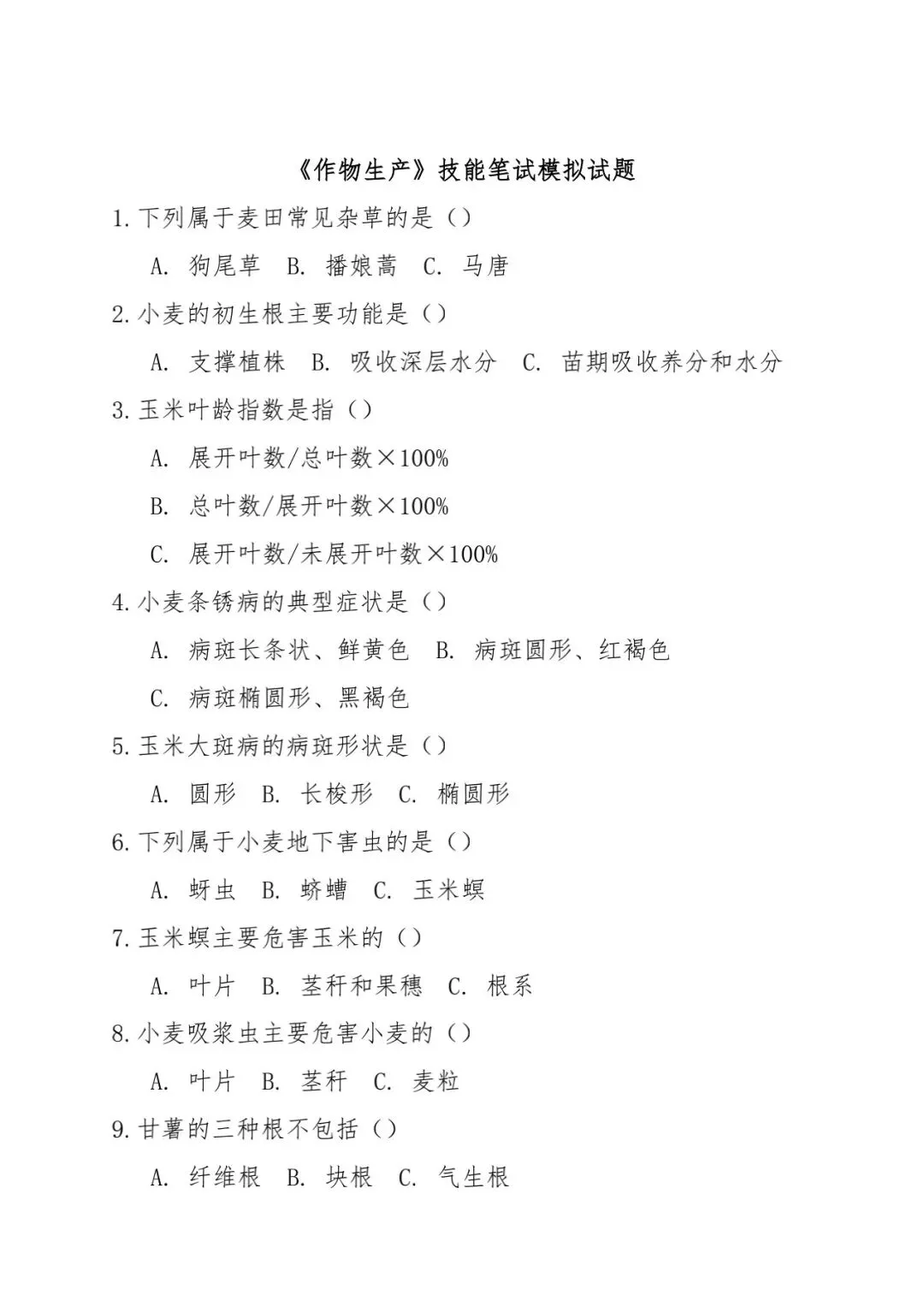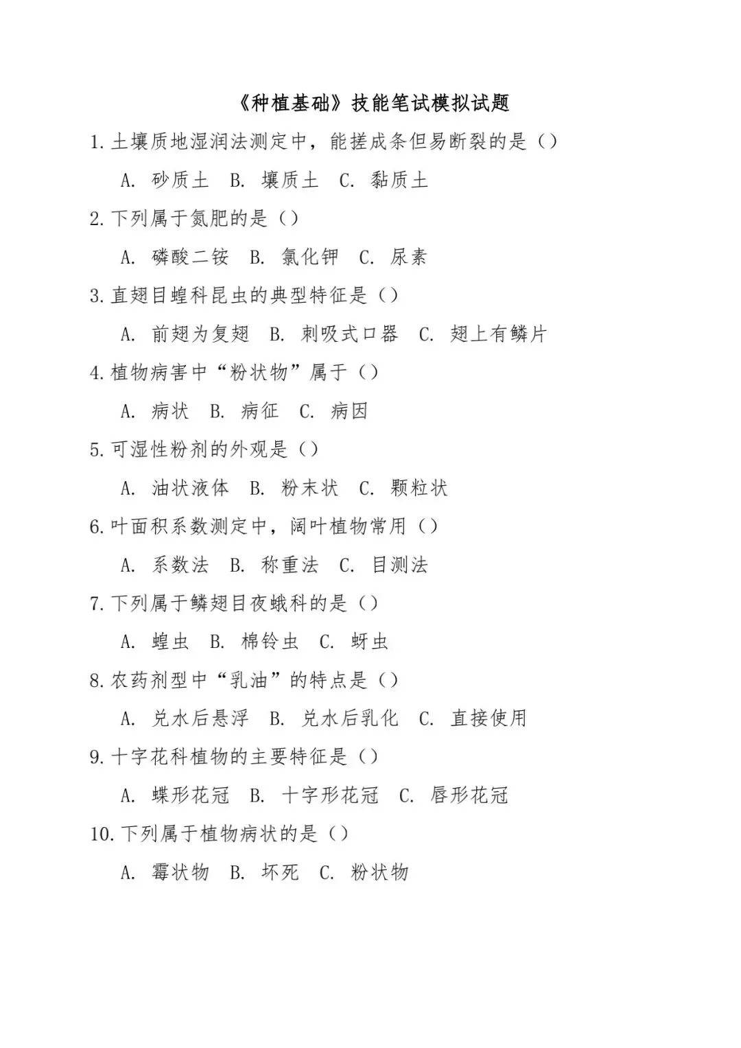 【农林】河北省中等职业学校对口升学考试—农林类·专业技能笔试(模拟试题)