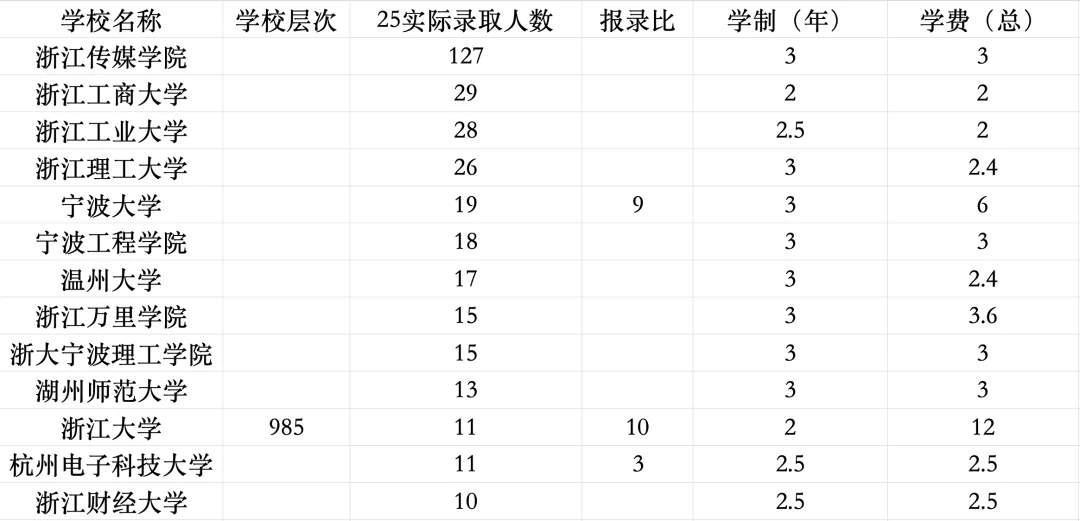2、浙大专硕因为学费贵,报录比已经大幅下降,从2020年的32:1跌至2025年的10:1。