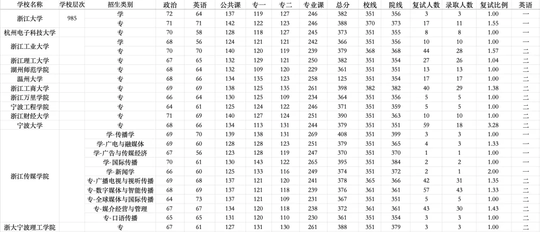 1、专硕和学硕的招生人数都是浙江最多的,专硕每年计划招生超过120人,复试还会临时扩招。学硕招15人左右,基本没人考。浙传25级报考人数大幅下降,竞争日趋友好。