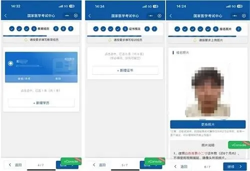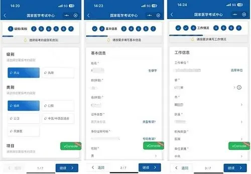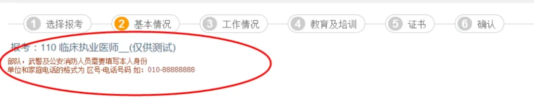 -若在个人信息完善中尚未上传照片,则在基本情况一组中需要注意完成照片上传(照片要求为jpg格式文件,不要大于40k)-台港澳人士参加医学考试时需要填写「往来大陆通行证一项」-现役军人(需要加考军事医学)人员需要准确填写「本人身份」一项3. 工作情况