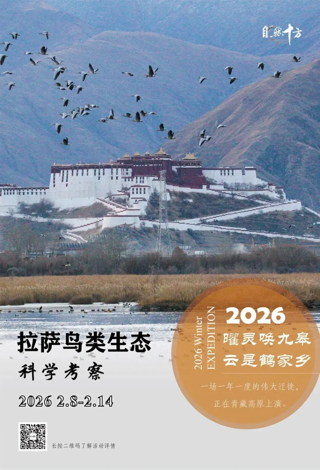 有愿意去拉萨的小伙伴吗? 🉑今年是第七次鸟类生态科学考察了,中国鸟类学会理事兰州大学生科院包新康老师全程带领,每年活动的队员主要是来自中科院和重点高校的学生。 ❤️日出时分,数百只黑颈鹤在冰面上,或引颈长鸣,或相互梳羽,或振翅飞翔,最近处离你只有二三十米!非亲身难诉其殊胜美好! 🉑几十种高原珍稀鸟类、如诗如画的羊卓雍错和拉鲁湿地,壮观的布达拉宫和比丘尼的雄色山、羊八井的地热田和温泉、和煦阳光