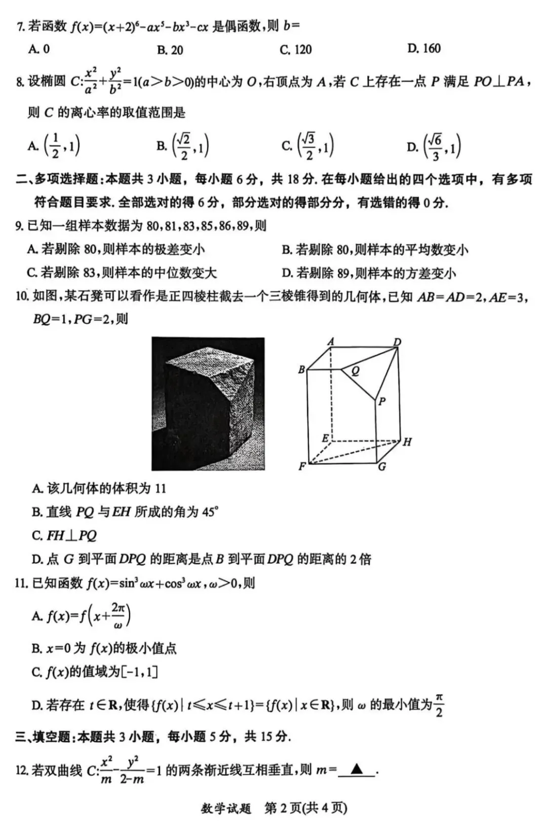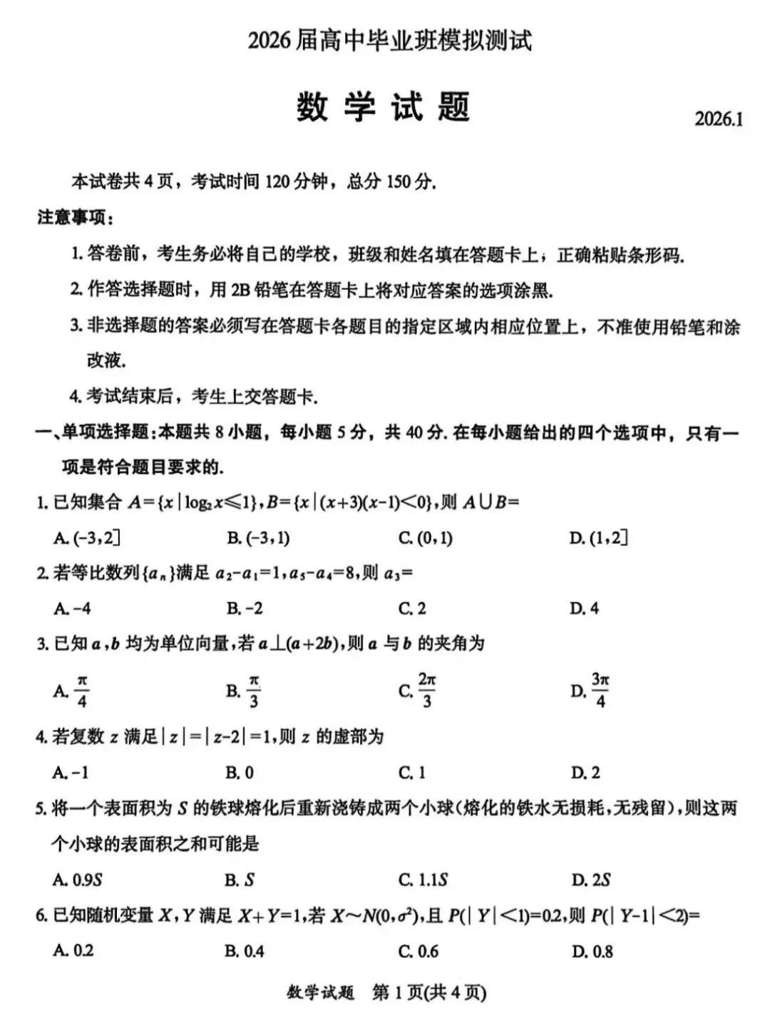 乌鲁木齐地区2026年高三第一次模拟考试问卷含答案ئۈرۈمچى مانۋىرنىڭ بارلىق پەن سۇئاللىرى