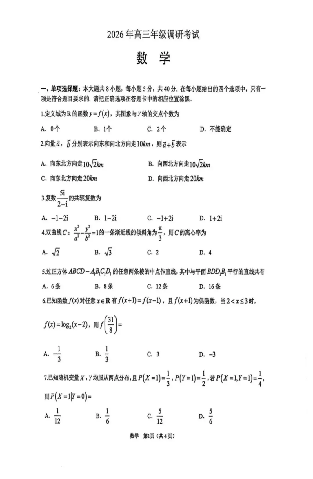 乌鲁木齐地区2026年高三第一次模拟考试问卷含答案ئۈرۈمچى مانۋىرنىڭ بارلىق پەن سۇئاللىرى