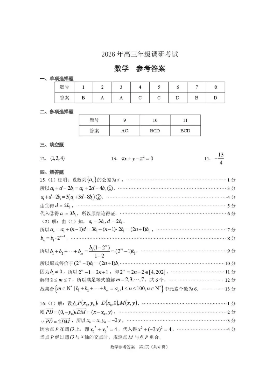 2026届东莞、揭阳市高三1月调研考试数学试题+答案