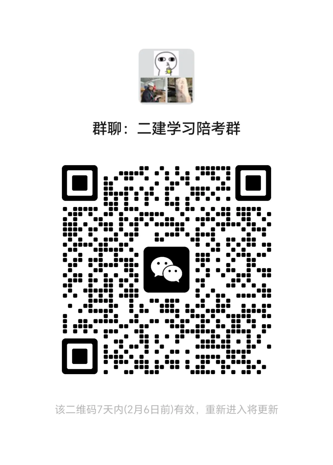 扫码入群,二级建造师备考专属阵地,考友互动、考情分析,群内实时答疑,抱团冲关二建!