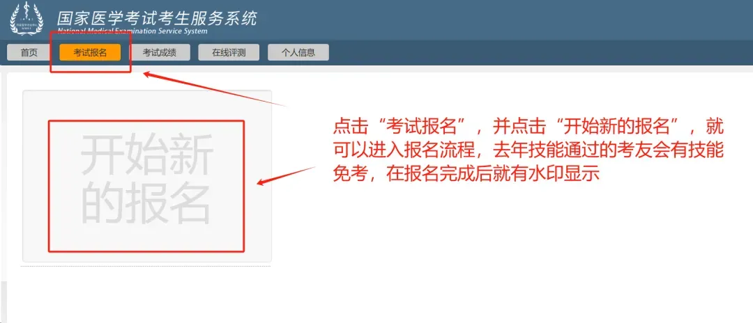 在电脑端打开国家医学考试中心网站http://www.nmec.org.cn,点击官网右侧考生服务进行进入官网报名登录界面。(一)注册:新用户首先需要注册账号和密码,填写个人相关信息,填报后点击“提交”按钮保存。登录方式1:微信扫码登录,该功能需要考生本人绑定微信号。首次使用时须与考生服务系统登录账号和密码进行绑定(一个微信号只能绑定一个账号),绑定成功后即可实现扫描一键登录系统。同时该系统仍保留原账号和密码的登录方式。登录方式2:如果没有绑定微信,请使用用户名和密码登录。如果用户名和密码忘记,请点击“忘记密码”进行找回。登录成功后,点击上方功能导航栏目下的“考试报名”按钮,点击“开始新的报名”即可开始进行报名操作。【类别】选【临床】【口腔】【中医/中西医】【公卫】或【乡村】;