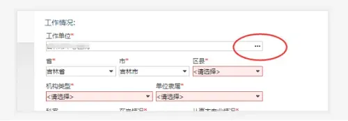 第一步:报名过程中,填写到第四步“工作情况”,选择“工作单位”项右侧省略号。
