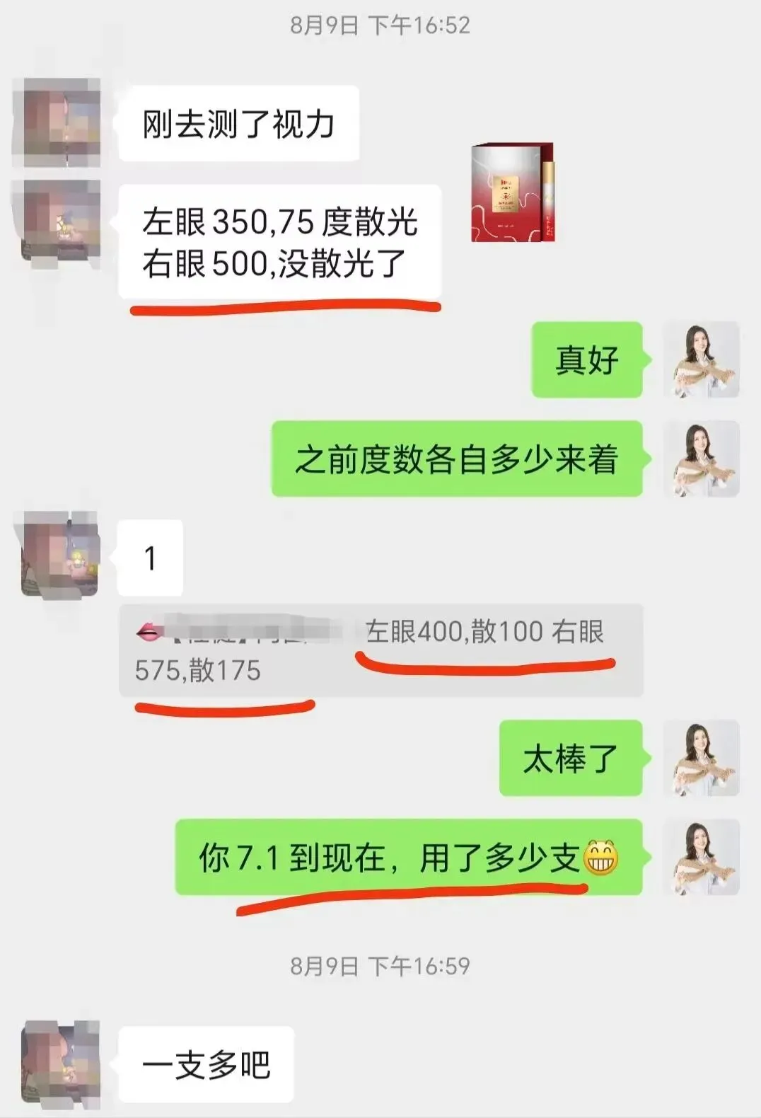 看我用视动力护眼膏,她就默默在观望。后面看我效果那么好,她咨询完以后,抱着试试看的态度 买来体验。