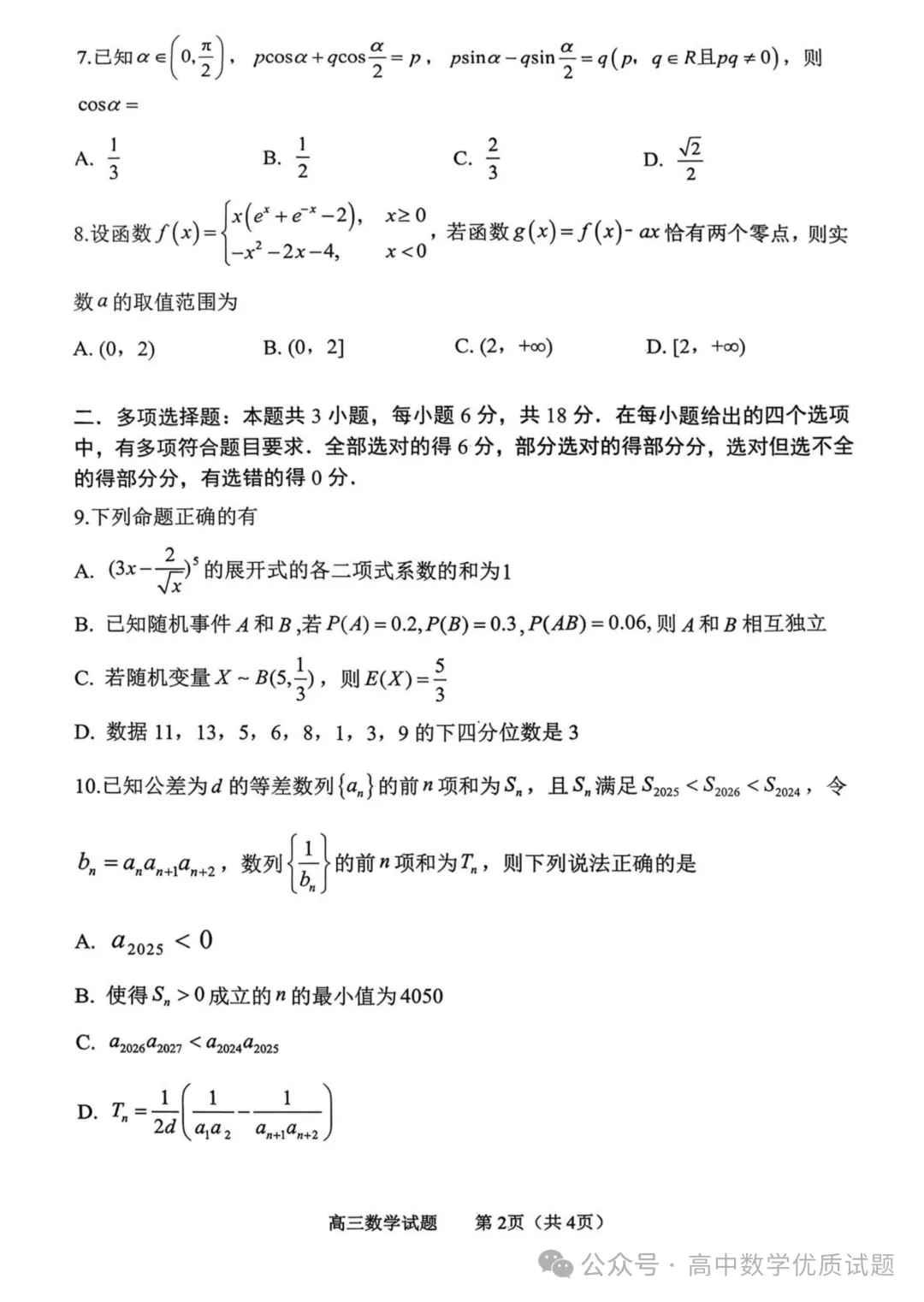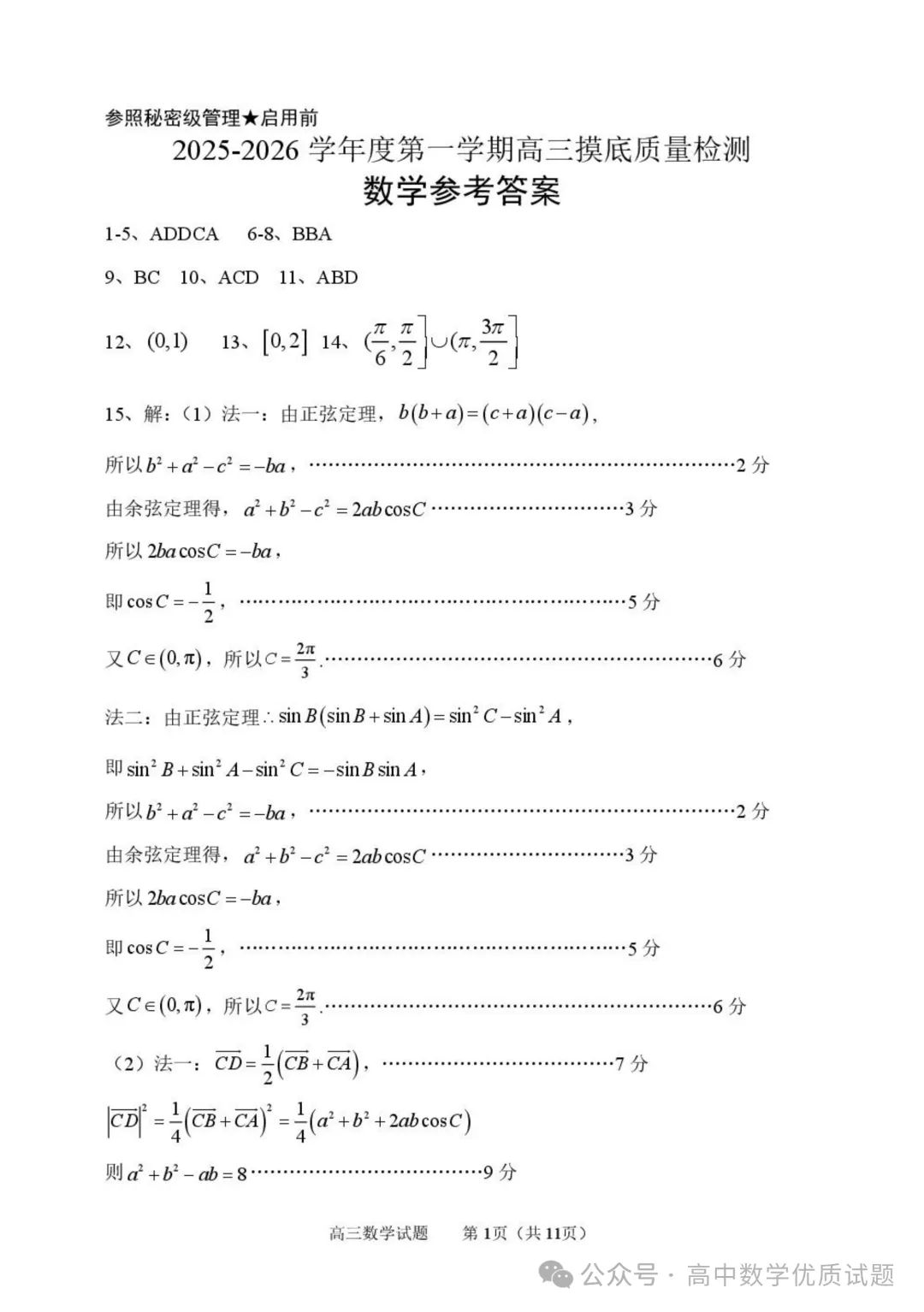 山东淄博2026届高三上学期期末考试数学试卷+答案