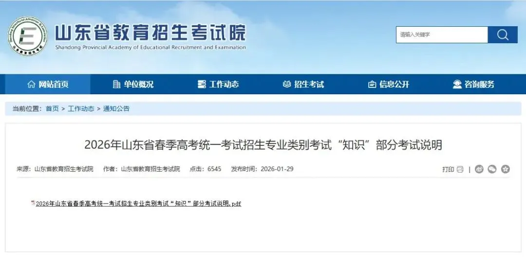 我省春季高考统一考试招生实行“文化素质+专业技能”考试模式。“文化素质”考试包括语文、数学、英语3个科目,总分320分;“专业技能”考试包括专业知识和技能测试两部分,总分430分,其中专业知识满分为200分,技能测试满分为230分。其中,春季高考技能测试一般安排每年3月份左右进行,春季高考文化考试与专业知识考试一般安排在每年5月份左右进行,具体时间将另行通知。 刚刚,山东省教育招生考试院发布了《2026年山东省春季高考统一考试招生专业类别考试“知识”部分考试说明》,一起来看~