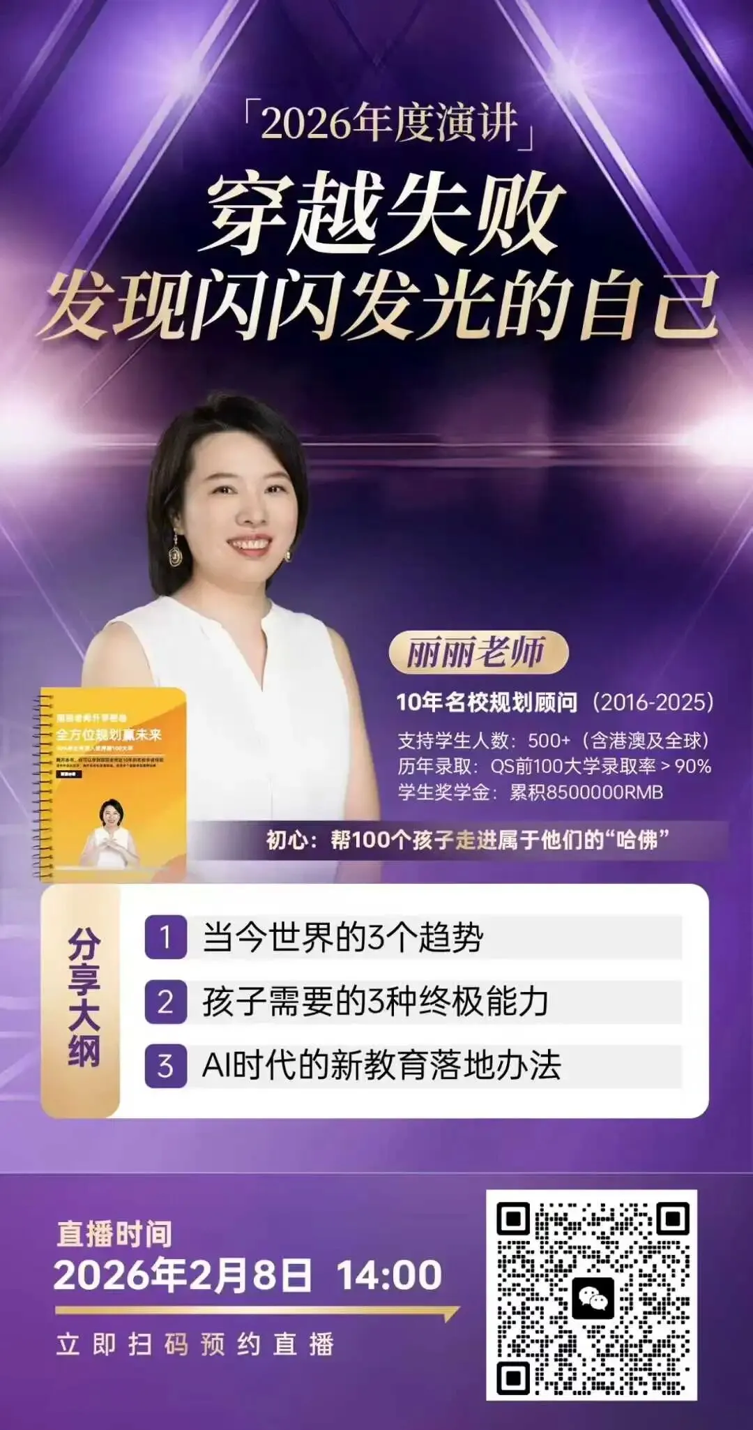 丽丽老师:10年名校申请顾问,已帮助超过500个家庭拿到理想offer和奖学金,累计为学生争取到超过1.2亿人民币的奖学金。擅长"多路径升学规划",让每个学生都有Plan B、Plan C。