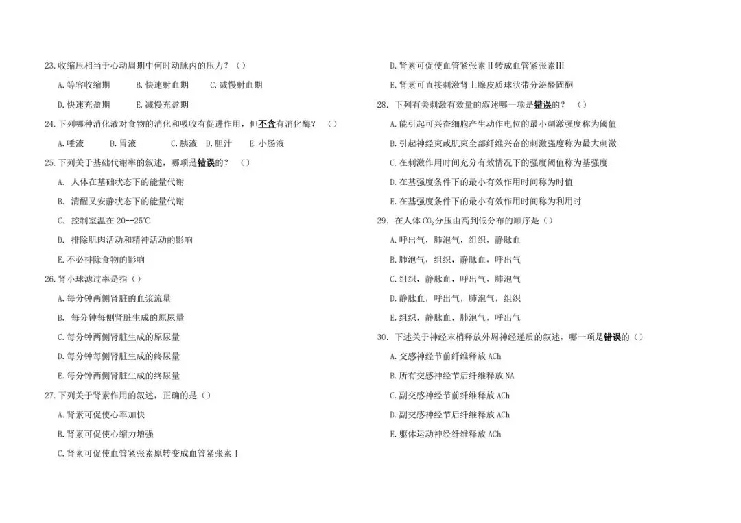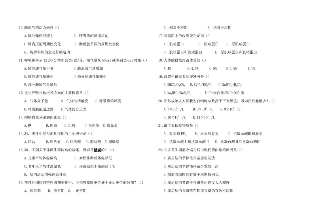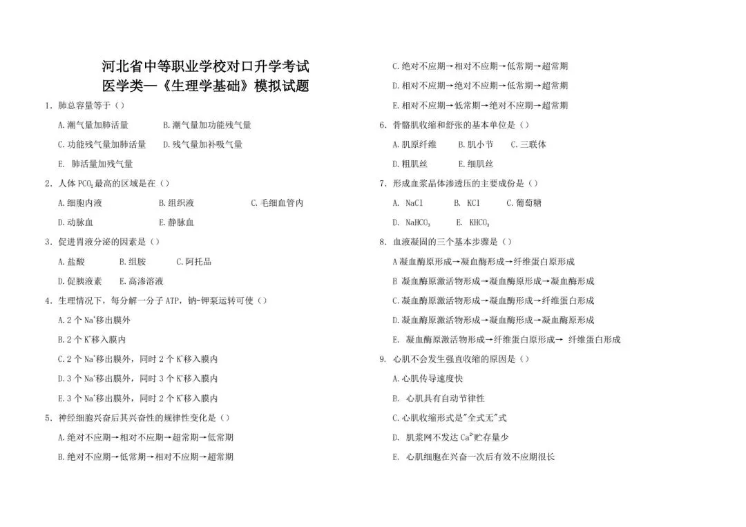 >【医学】河北省中等职业学校对口升学考试—医学类·《生理学基础》模拟试题