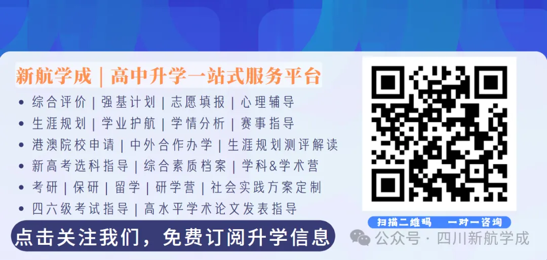 想要深入了解关于高中领域的升学规划、多途径升学(强基、综评、专项计划、港澳院校申请、海外留学等)、志愿填报、院校/专业选择、就业升学等信息,请在后台留言(您所在省份地区+姓名+电话+学段),新航学成的升学老师会给您做详细解答。
