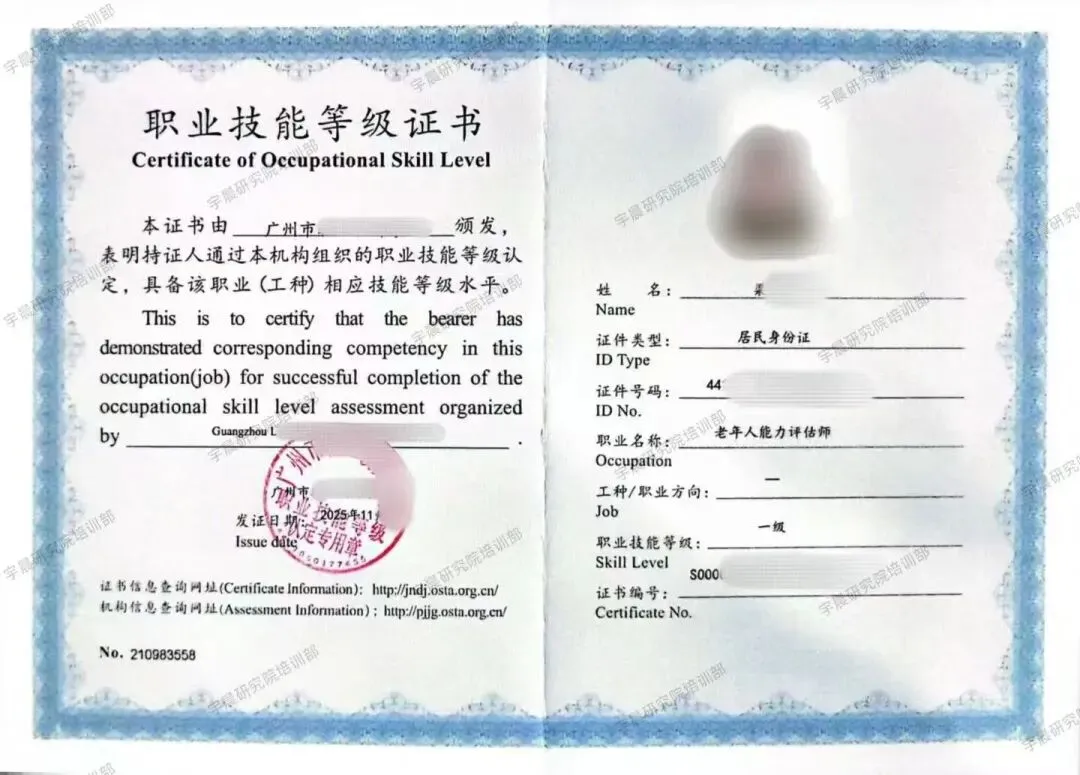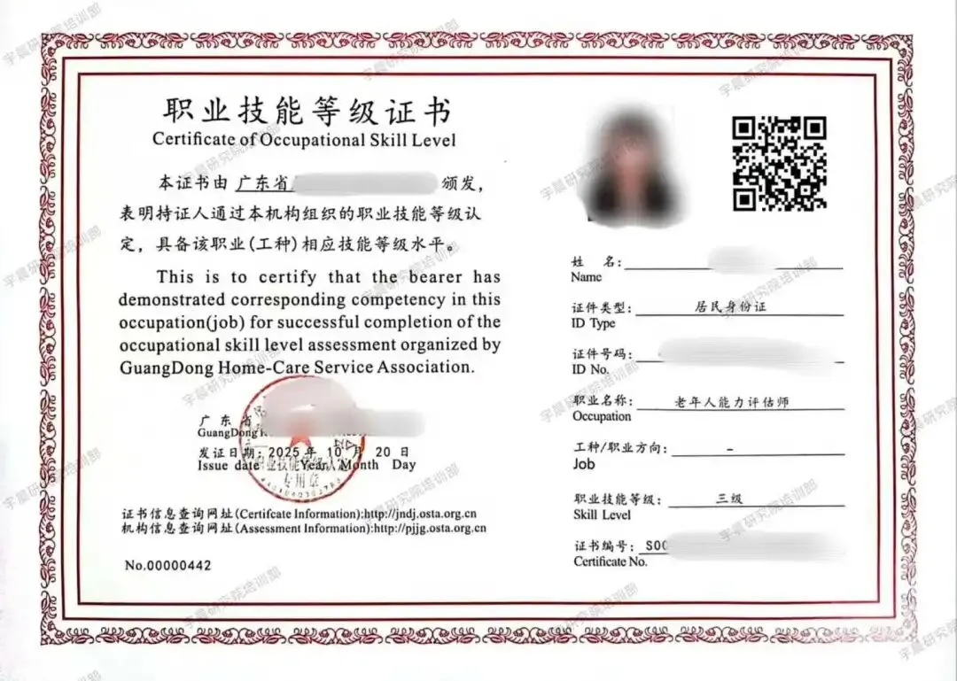 《老年人能力评估师》属于职业技能等级证书,一旦考取,在证书可在人社官网全国技能人才评价网(原国家职业资格工作网)终身可查,全国通用。