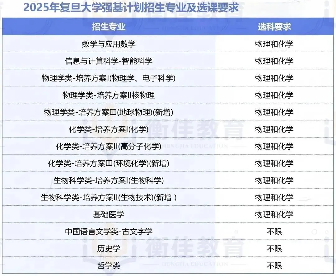 2025年复旦大学强基计划新增3个招生专业,1个培养方向,分别为: