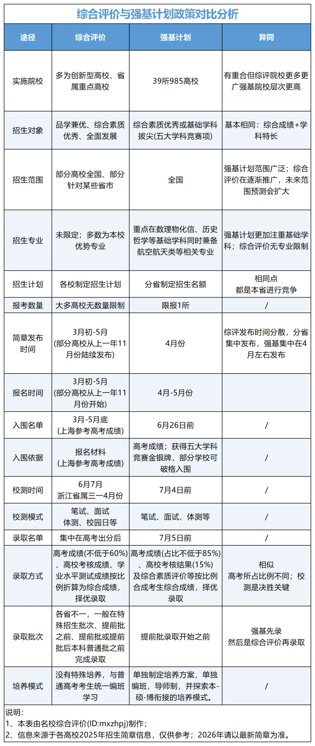 1️⃣强基计划、综合评价两者可以同时报名,互不冲突,未被录取不影响高考裸分、提前批等其他批次录取,增加升学机会。