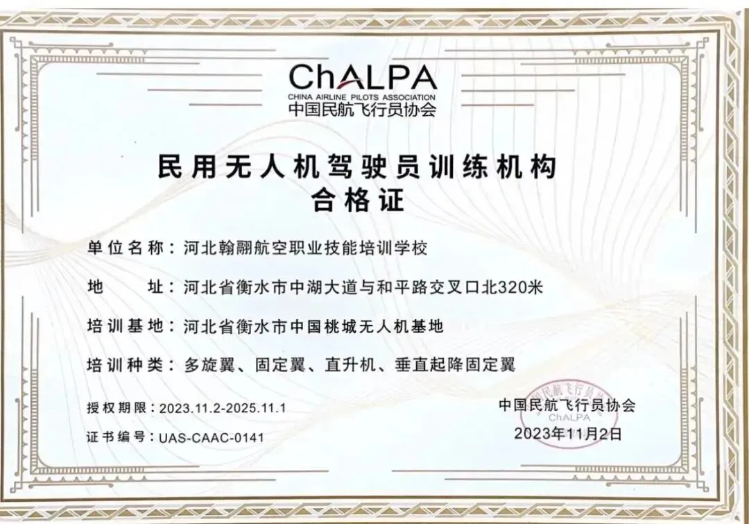 河北翰翮航空职业技能培训学校是通过中国民航飞行员协会审定合格,中国民航局备案的民用无人机驾驶员执照培训学校,同时也是中国民用航空局认定的河北省无人机执照03考试点。