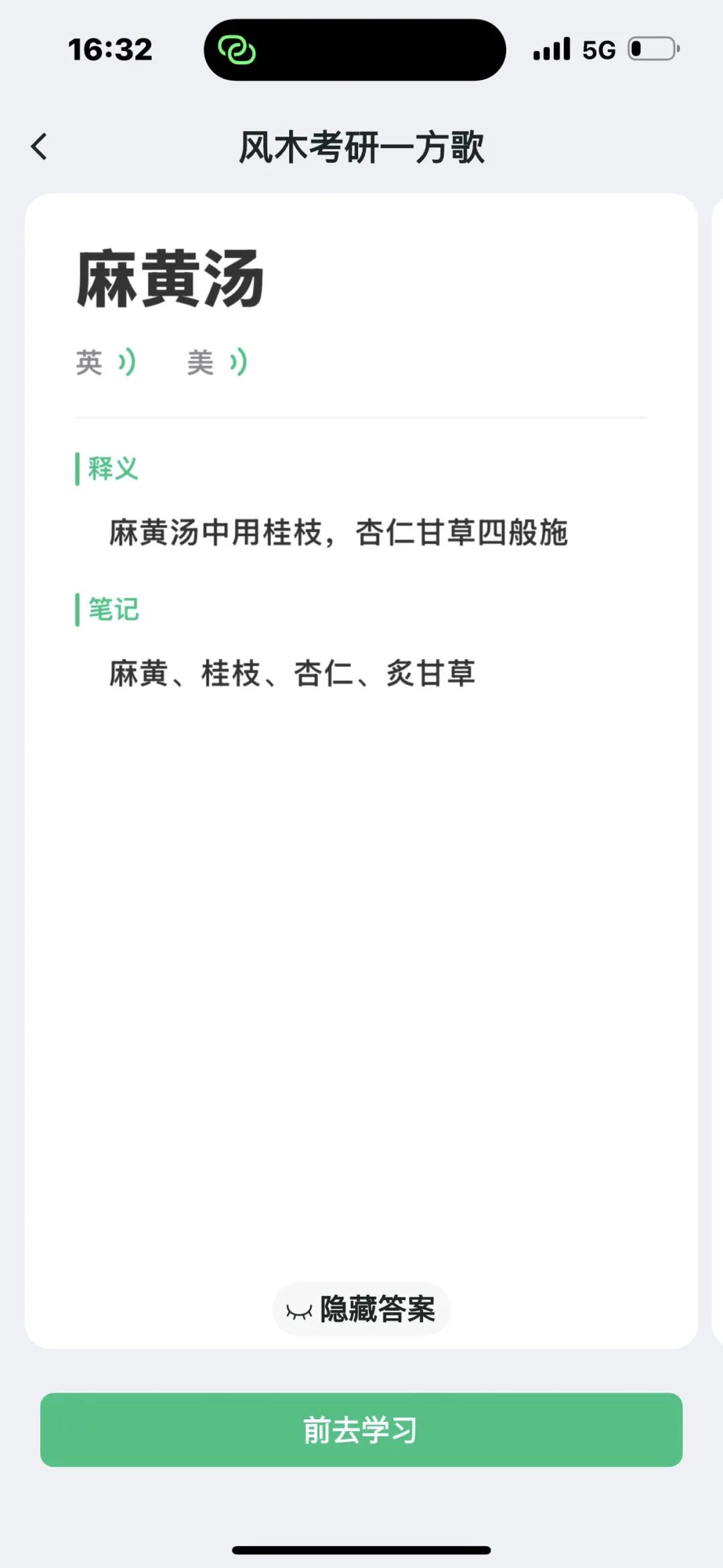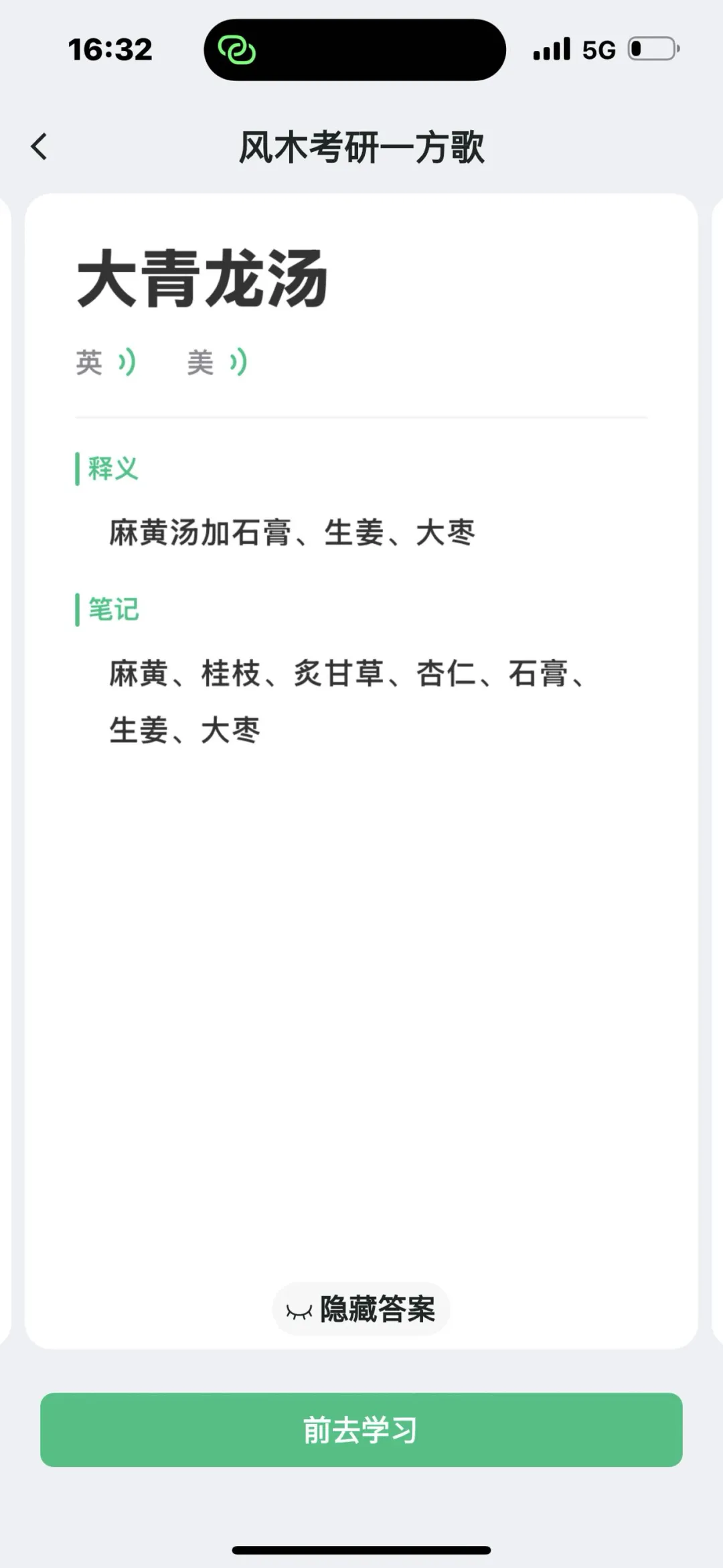 把中药、方剂编成歌诀录入卡牌(滑记APP搜索风木考研),为后续滚动复习打基础;