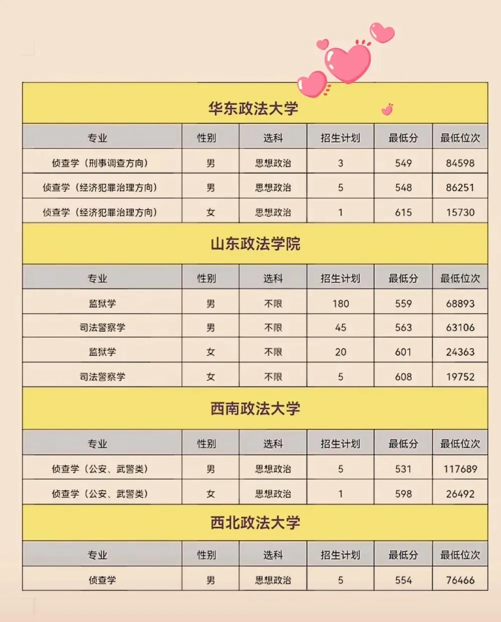 特别说明:山东警察学院的招生计划预分到各市,考生需根据高考报名所在市填报对应计划。此外,2025年山东省公安政法类招生计划较2024年减少258人,其中山东警察学院缩招173人。