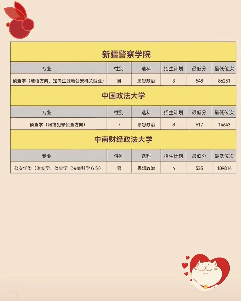 专业类别与选科要求:招生专业分为公安学类和公安技术类